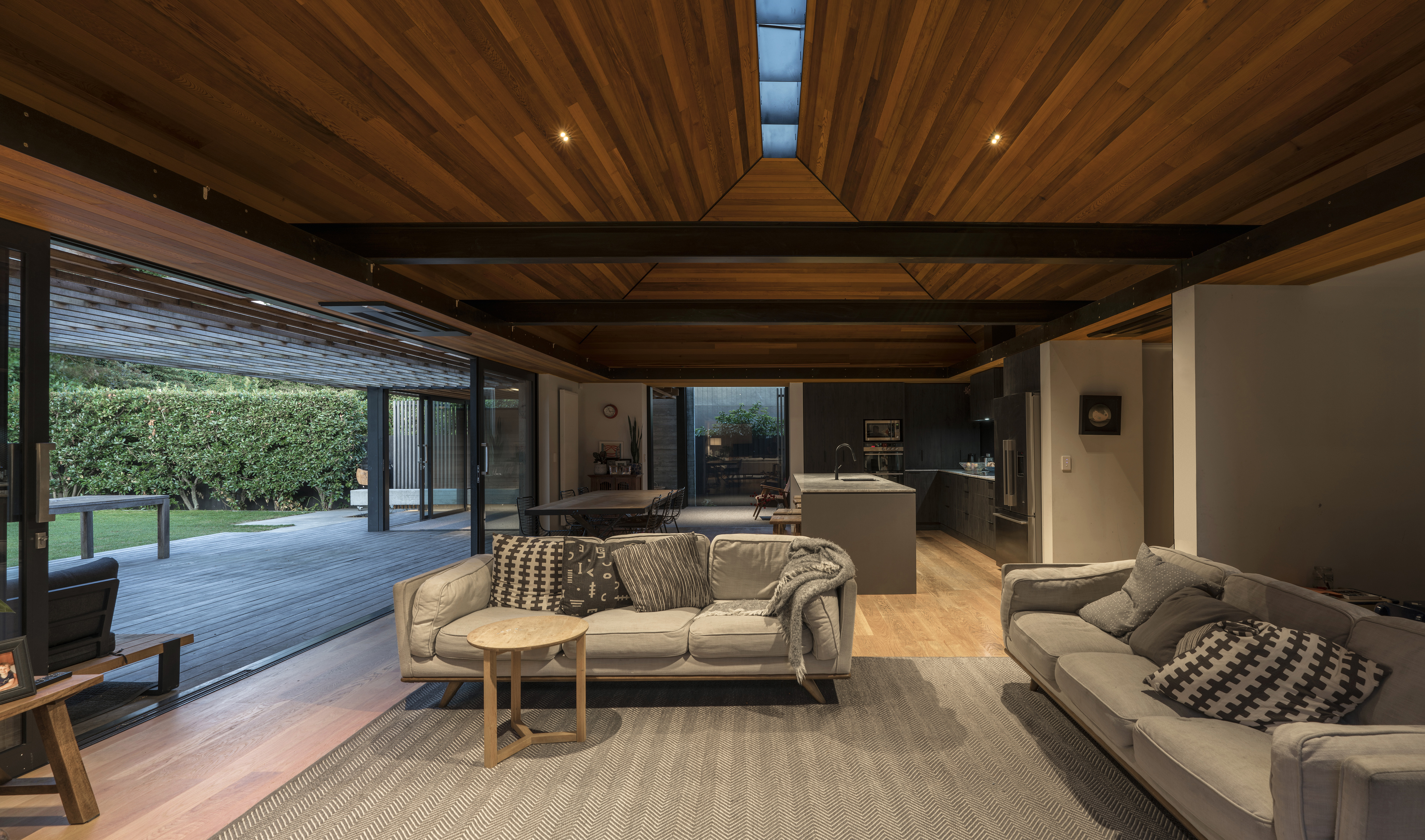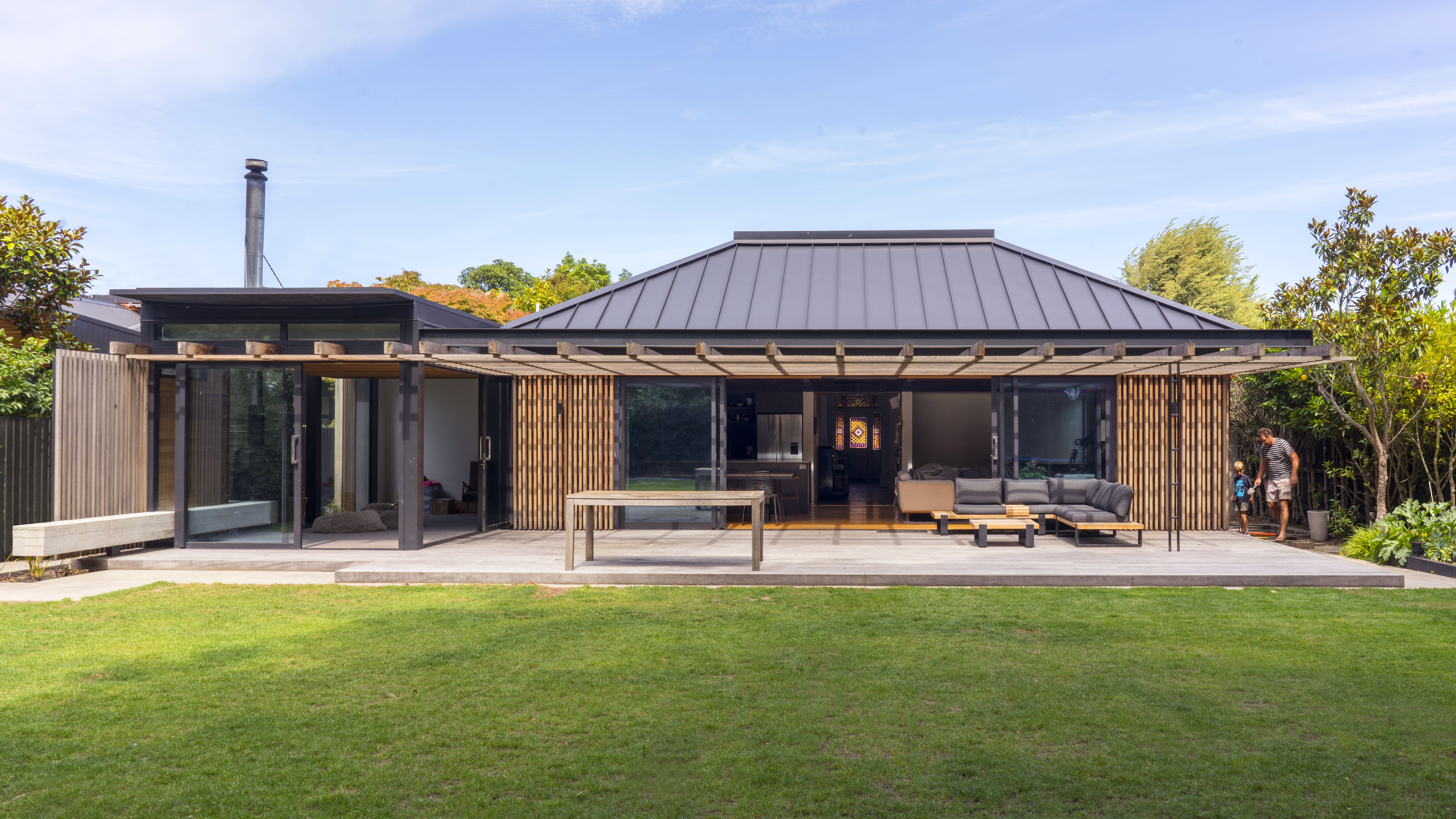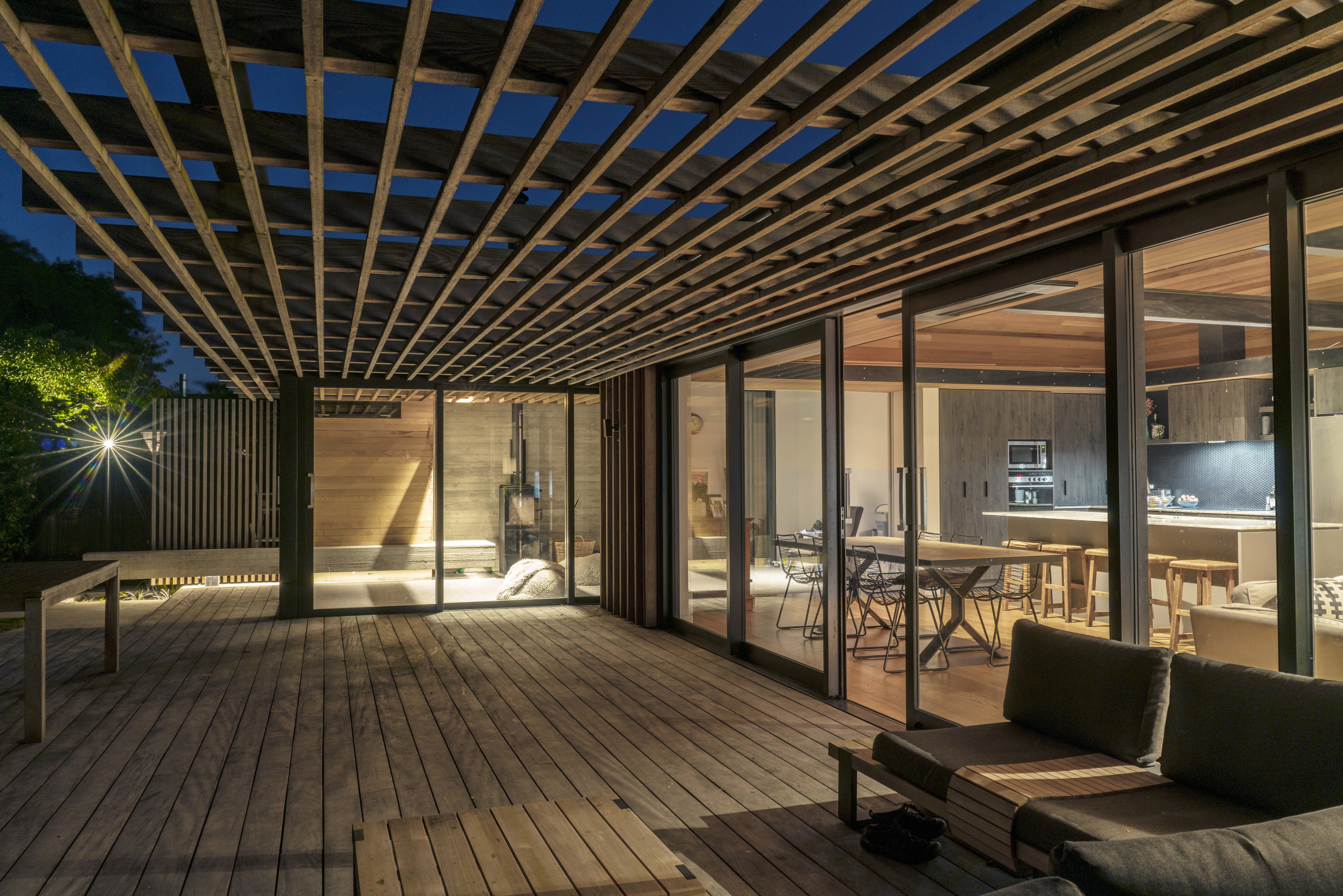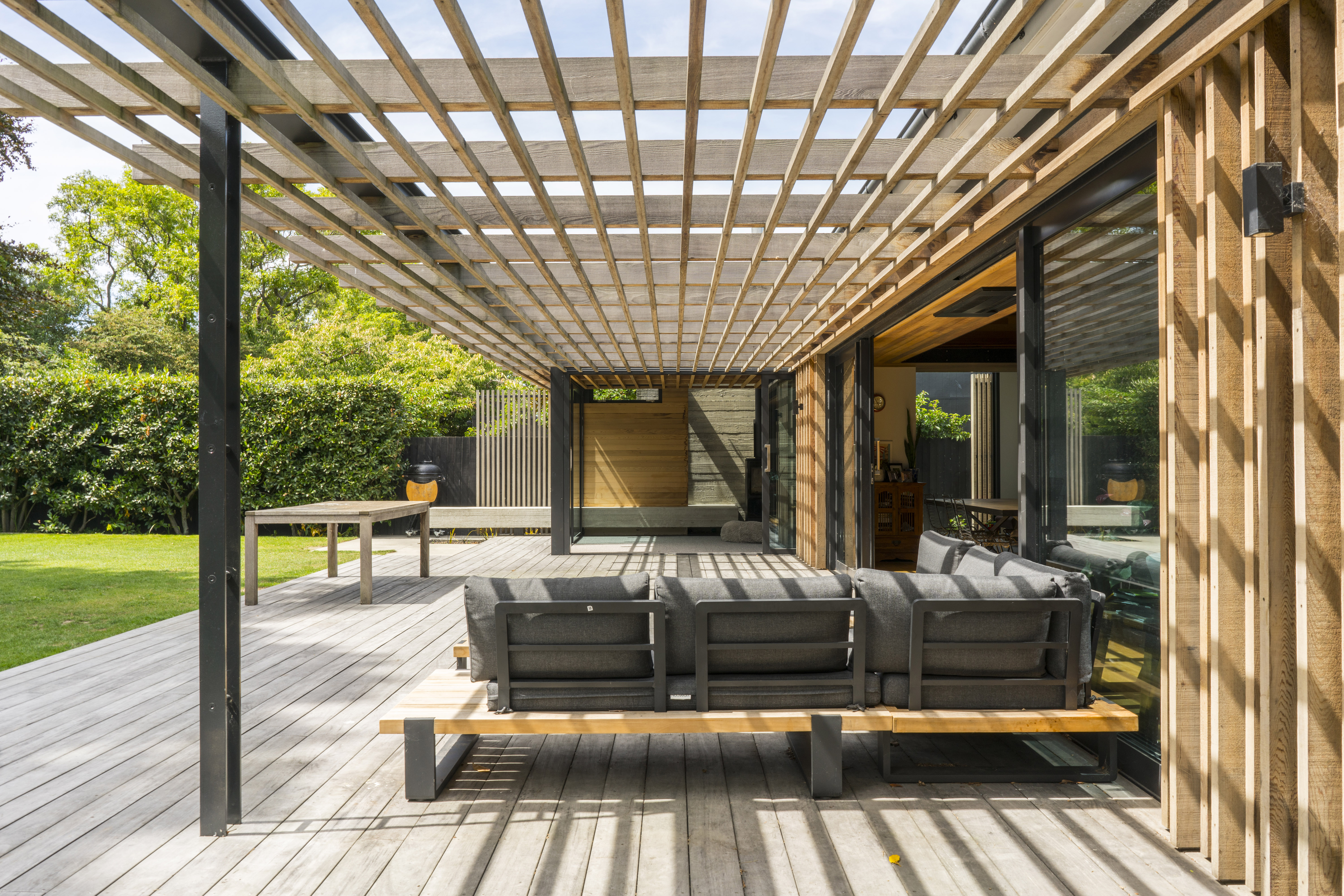 This addition to an 1899 brick heritage villa set within a leafy Christchurch suburb is achieved with skill and sensitivity. A garden room and floating pergola mediate the transition from house to garden, contrasting with the age and solidity of the villa but achieving harmony through rich materiality, texture, craft and play of light and shadow. The living spaces are intimately scaled with inventive details and carefully frame views of the garden. This elegant home provides an inspired example for contemporary additions to heritage houses.