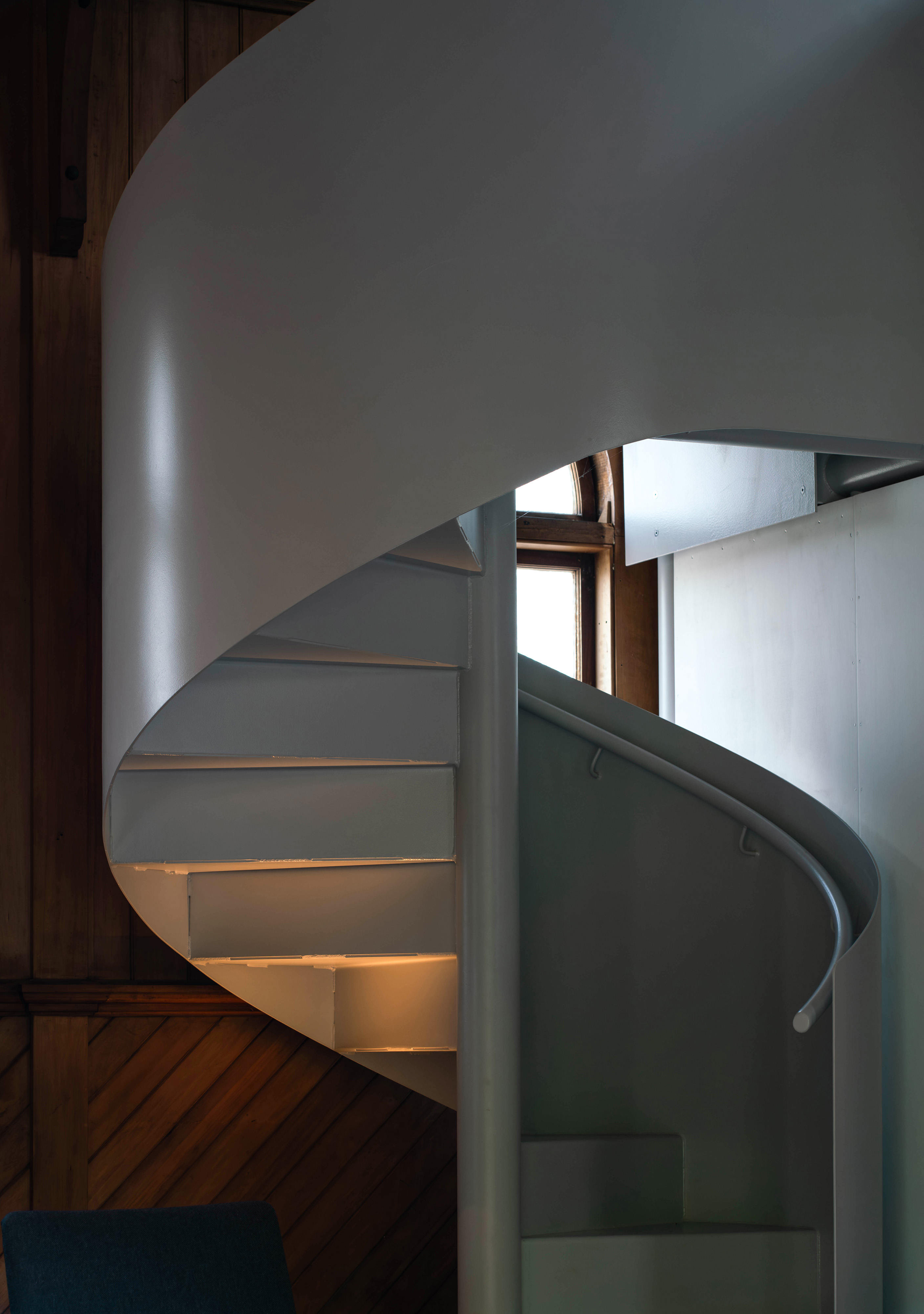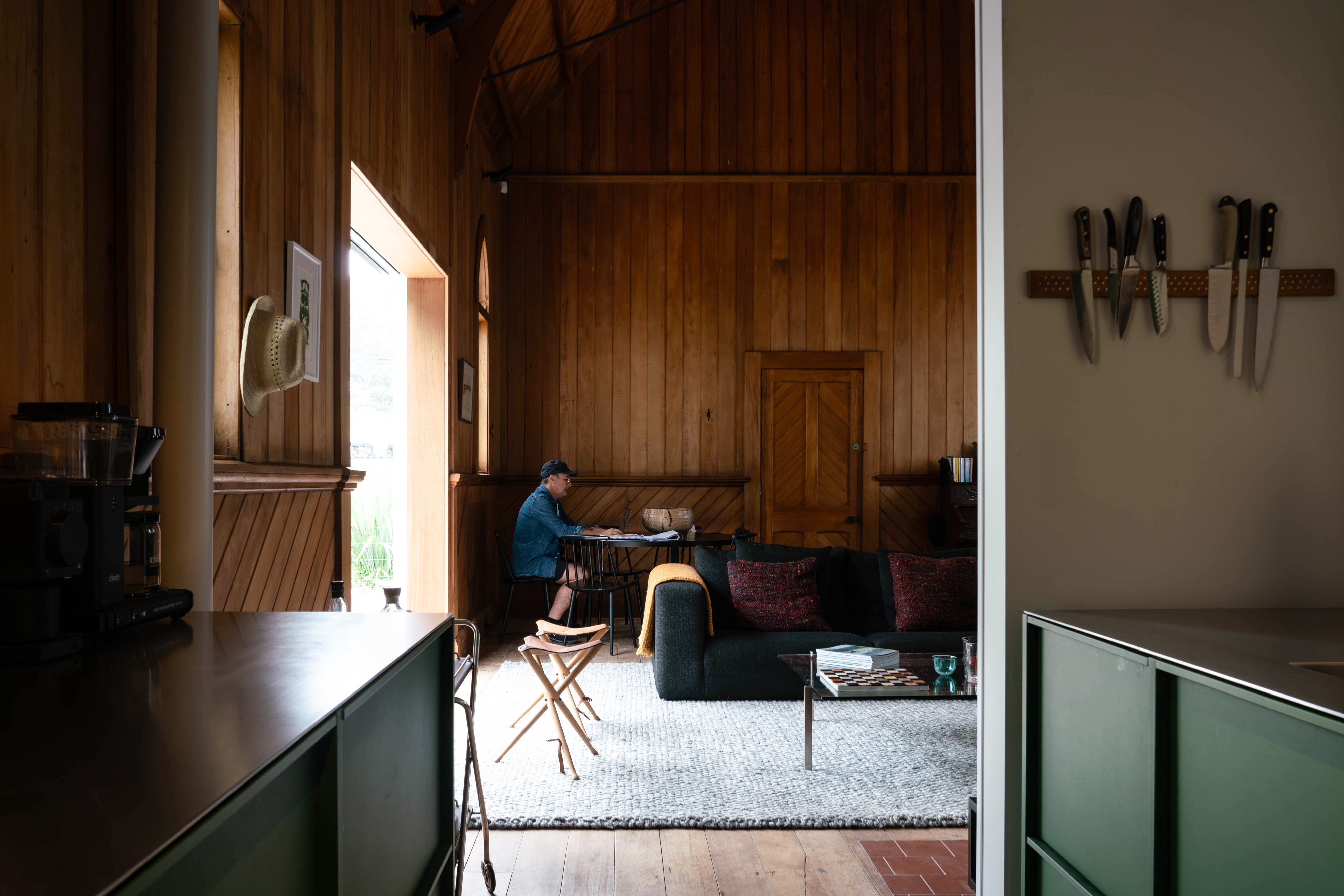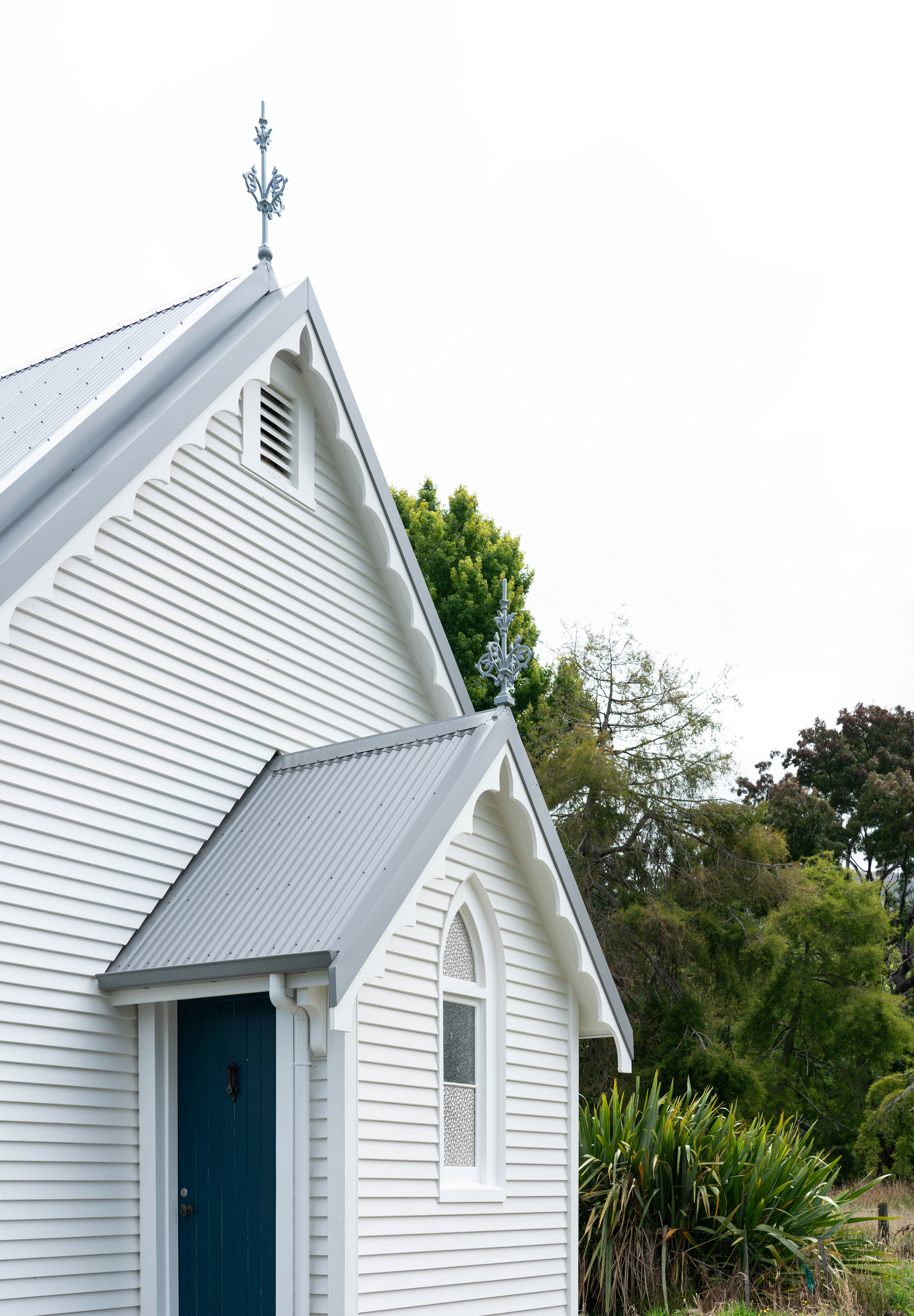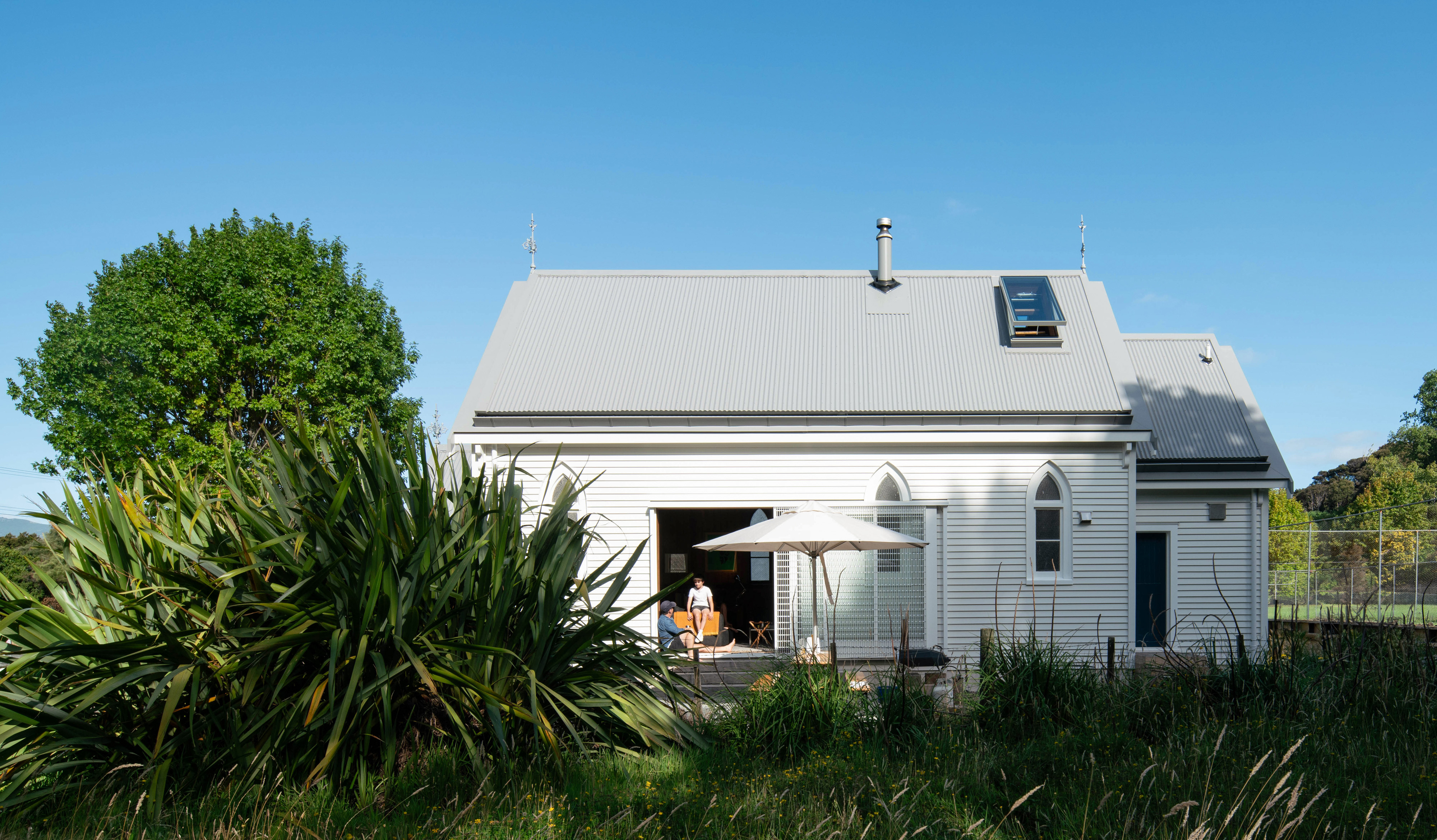 Wainui Church is an exemplary adaptive reuse project, blending preservation with clearly articulated contemporary interventions. The detailing is clever, with fine angles bordering the existing windows to abut the new cladding, and the new roof insulation pulled back off the façade to maintain the fineness of the fascia. A new west-facing opening with a sliding screen is the only suggestion of what is inside. Here, a steel mezzanine hovers off the existing structure, with a sculptural spiral stair to the primary bedroom. The footprint is compact but includes a kitchen, television room, with the children’s room, and bathroom tucked in the vestry. Rich and colourful material choices are used throughout. The project is a testament to the potential of adaptive reuse and extends the life of a special building.
