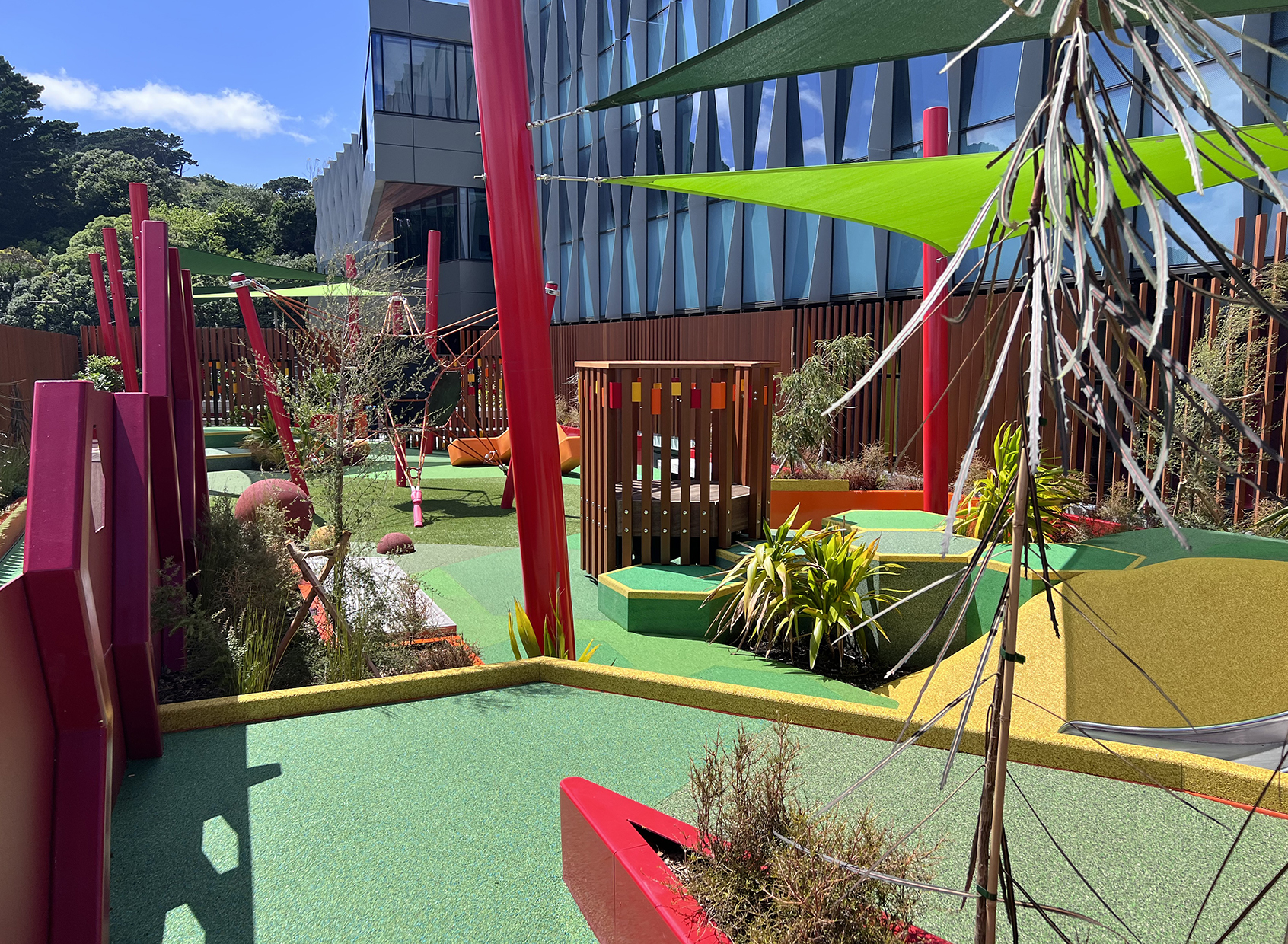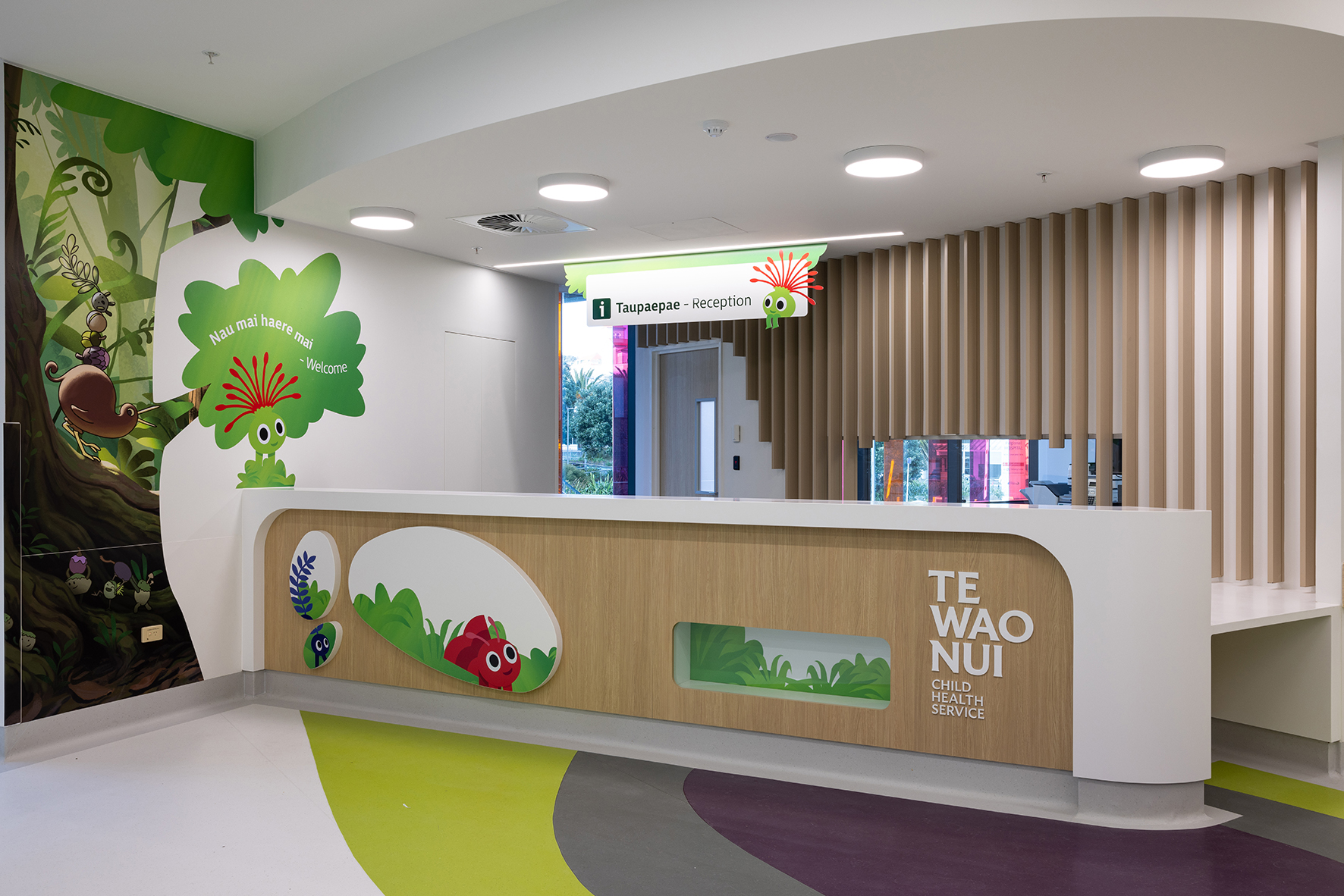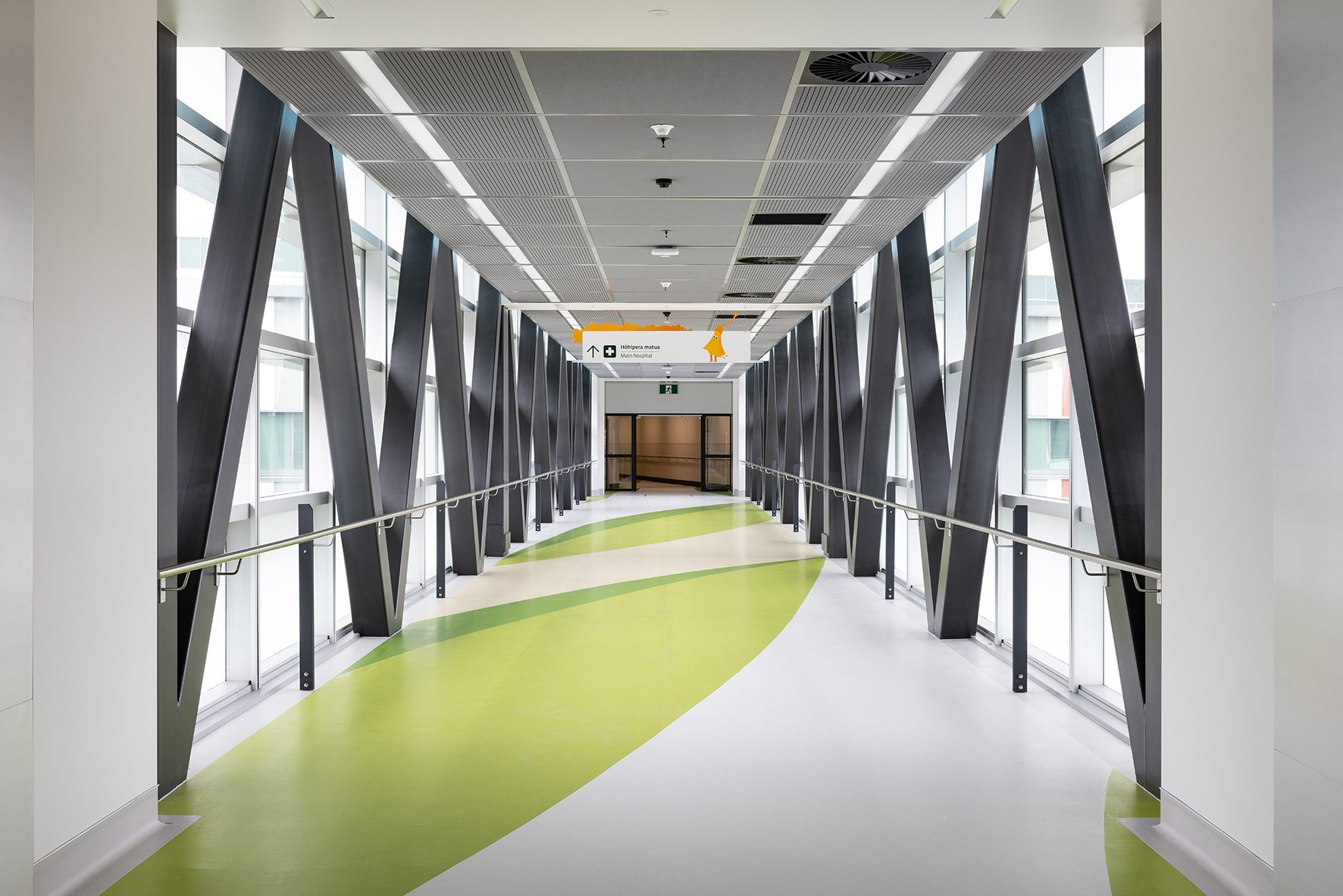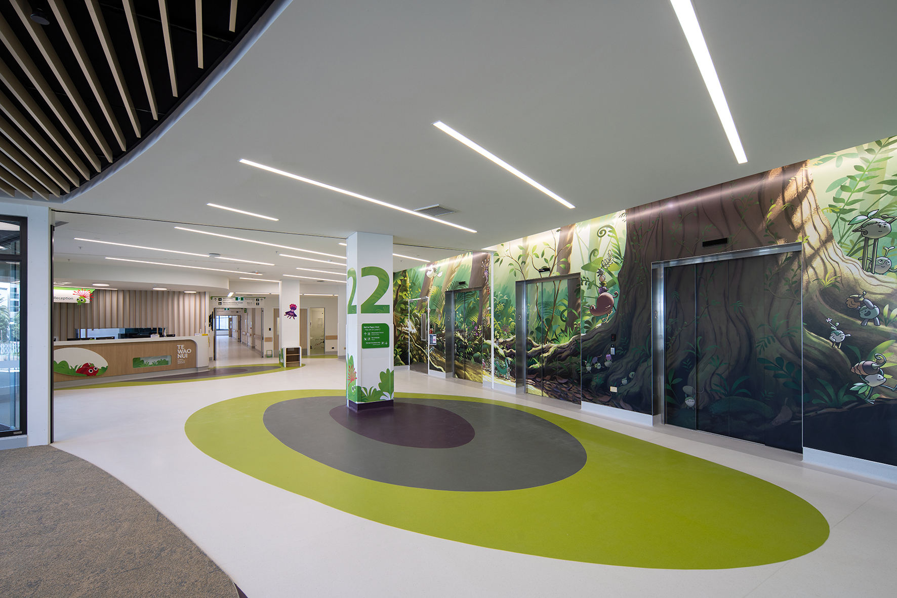 Made possible through public funding and a significant donation from philanthropist Mark Dunajtschik, Te Wao Nui is a unique healthcare facility with a welcoming, calm and child-focused environment. The building’s rigorous technical, programmatic and seismic resilience requirements have been met. Also provided are generosity of space, daylight and views throughout, while innovations from overall building services distribution, patient-room cabinetry design and whanau facilities have been creatively incorporated. Moments of discovery and playfulness have been incorporated seamlessly into the building fabric, from the warmth of interior finishes to frit patterns on glazing. Landscape and playscape areas are inviting, with extensive green foliage softening public-access areas and buffering the building from the surrounding car park.