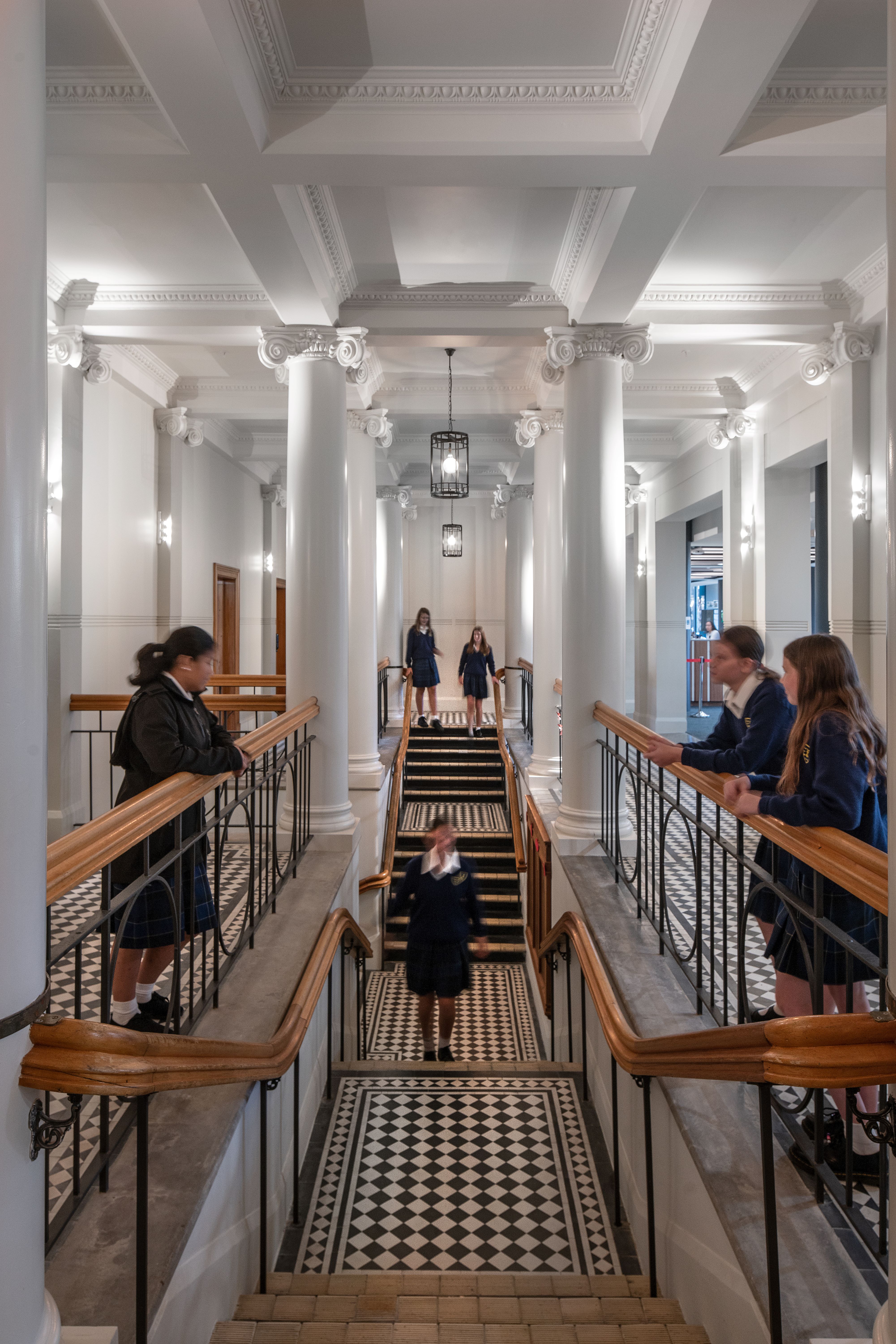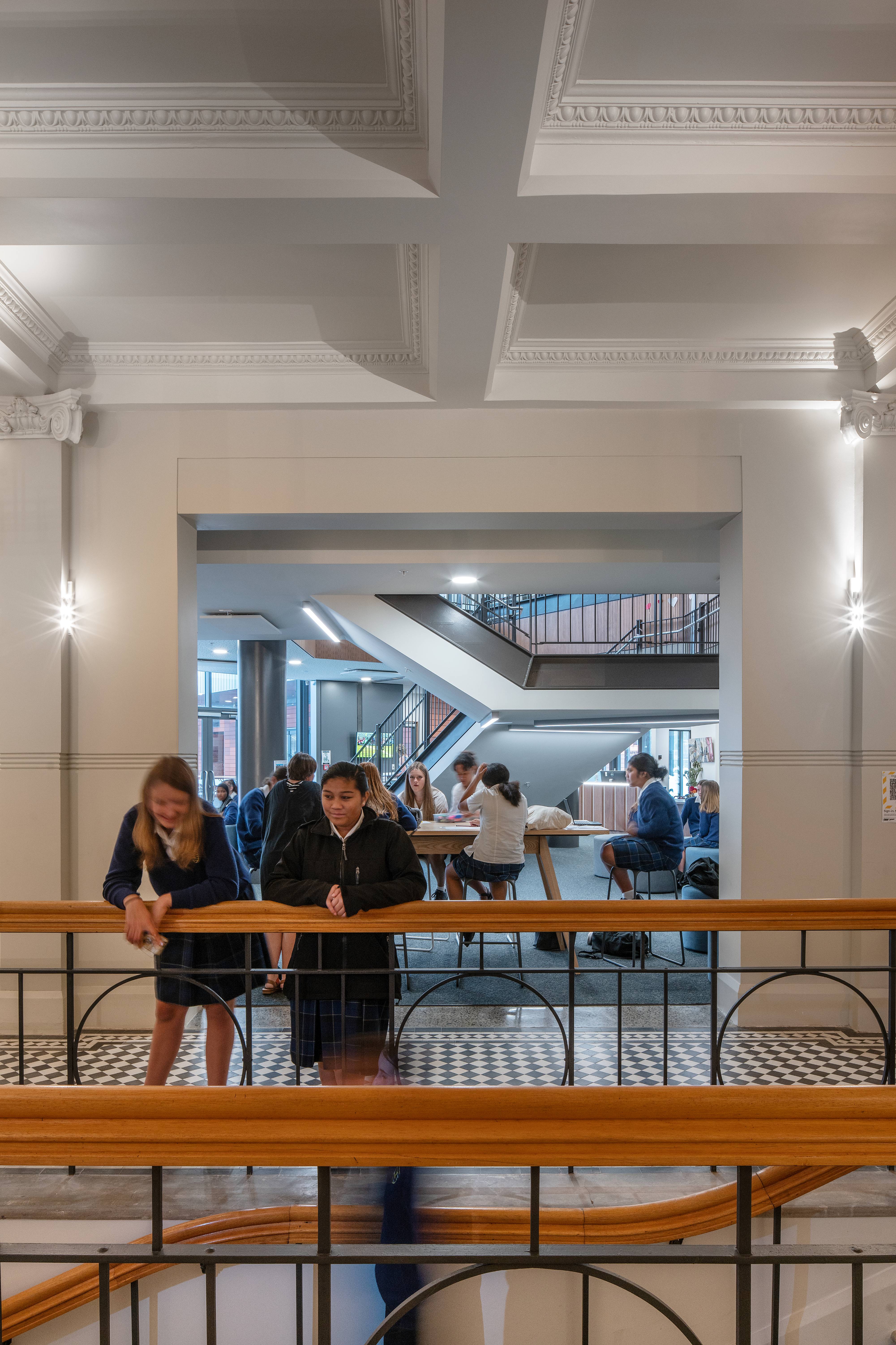 A significant and highly visible fragment of Wellington’s built history has been preserved with the retention of the heritage façade of the Main Building, Matairangi, at Wellington East Girls College. This was a complex strengthening exercise, in which the multi-storey unreinforced masonry façades of the 1924 Category 1 Heritage listed building were attentively rebuilt. The historic vestibule has been painstakingly and beautifully restored, and reconnected to the daily life of the school. This was an important project, not only for the place the façade holds in the Wellington cityscape, but also for the significance of the building and its vestibule for generations of Wellington East students.
