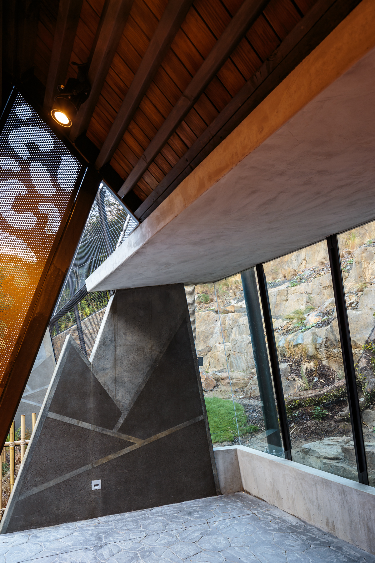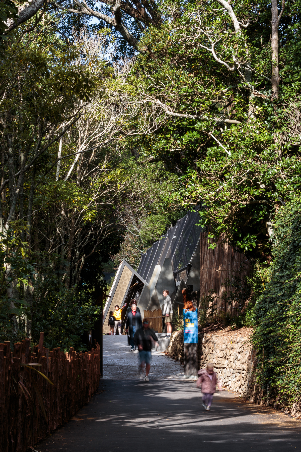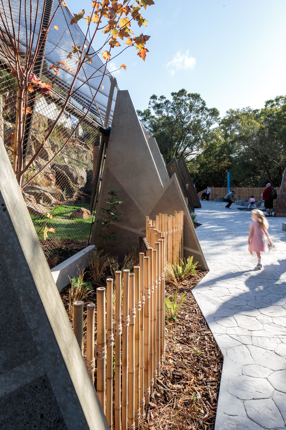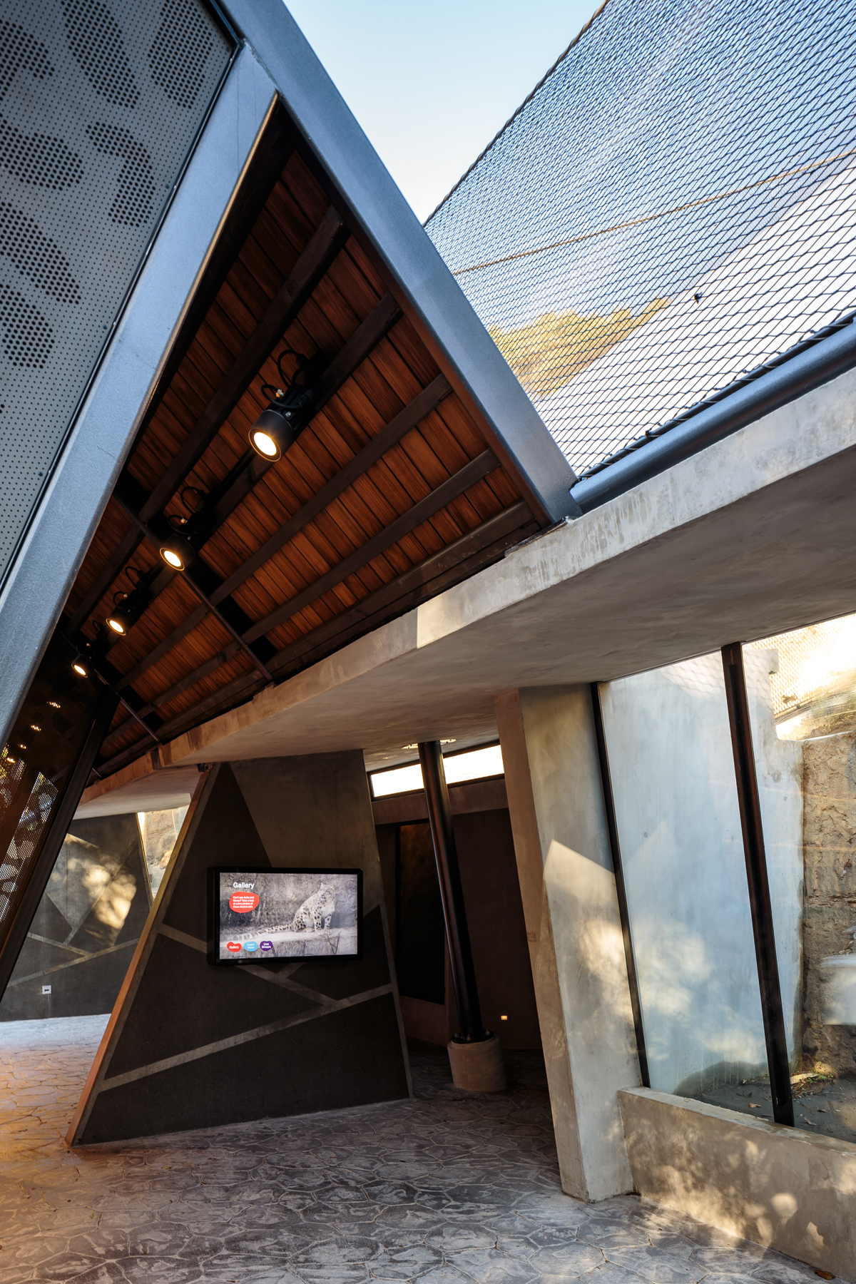 The architects have successfully juggled the spoken brief and silent needs of all involved in this project. The snow leopards seem to relish their new environment, leisurely sleeping on the sheltered purpose-made dens, providing visitors with the experience of seeing these majestic creatures up close. Perching areas give a more distant view and allow privacy for the animals, on their own terms. The enclosure’s hard landscape is sustainably built, reusing the old sun-bear enclosure materials as fill, minimising waste removal in line with the zoo’s sustainability goals. The paramount safety of the zookeepers is integrated into the design. Black steel mesh, a key safety feature, and its supporting structure anchored in precast buttresses, is cheerfully detailed with snow-leopard markings. The project, designed through the Covid period, speaks to the animals’ native landscape, while anchoring the visitor experience here in Te Whanganui-a-Tara and the country’s oldest zoo.