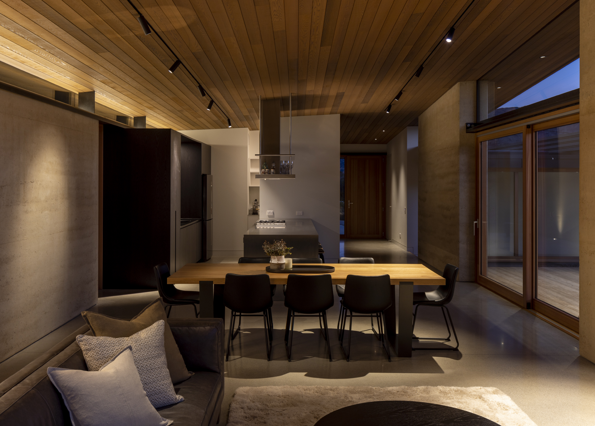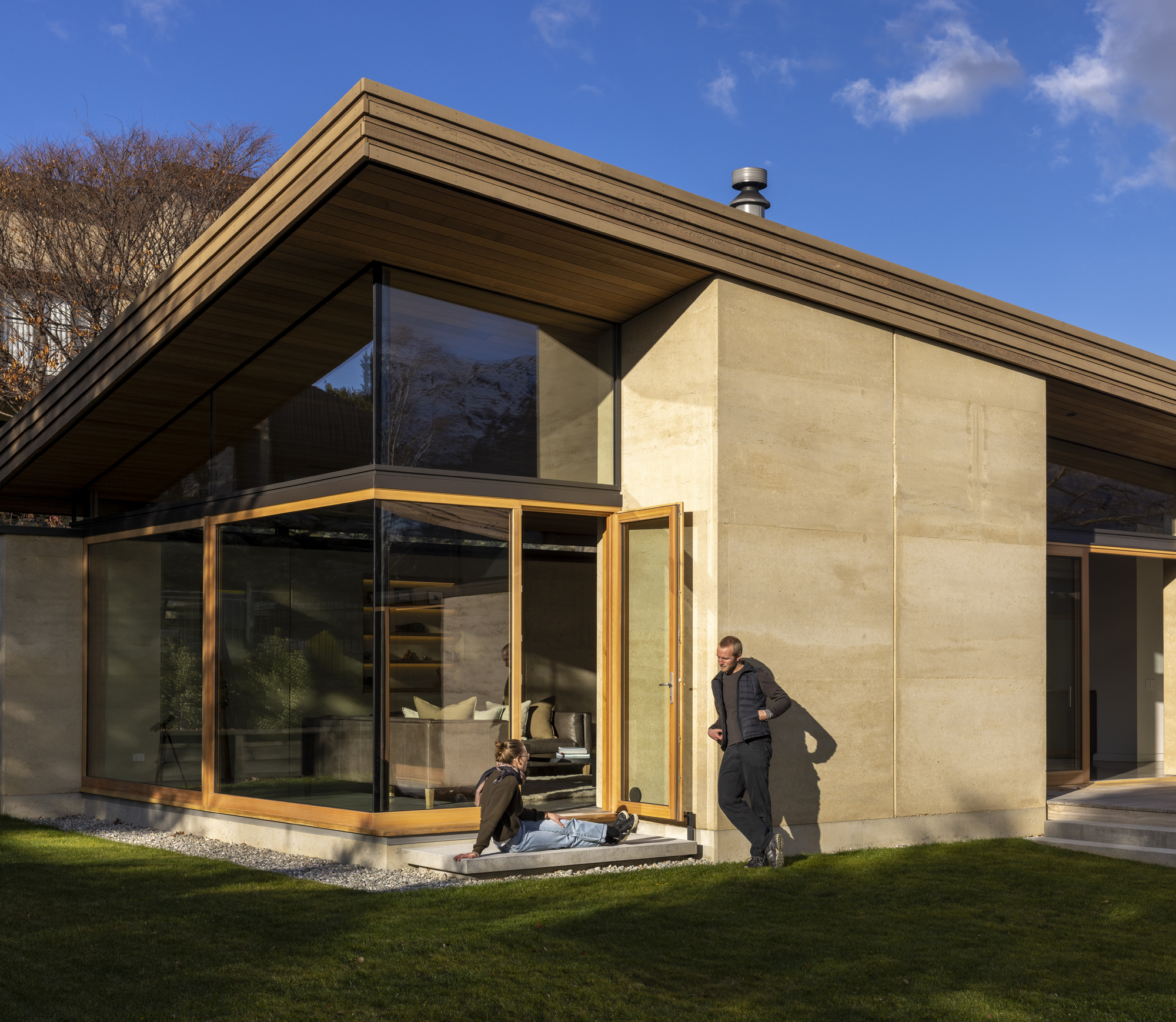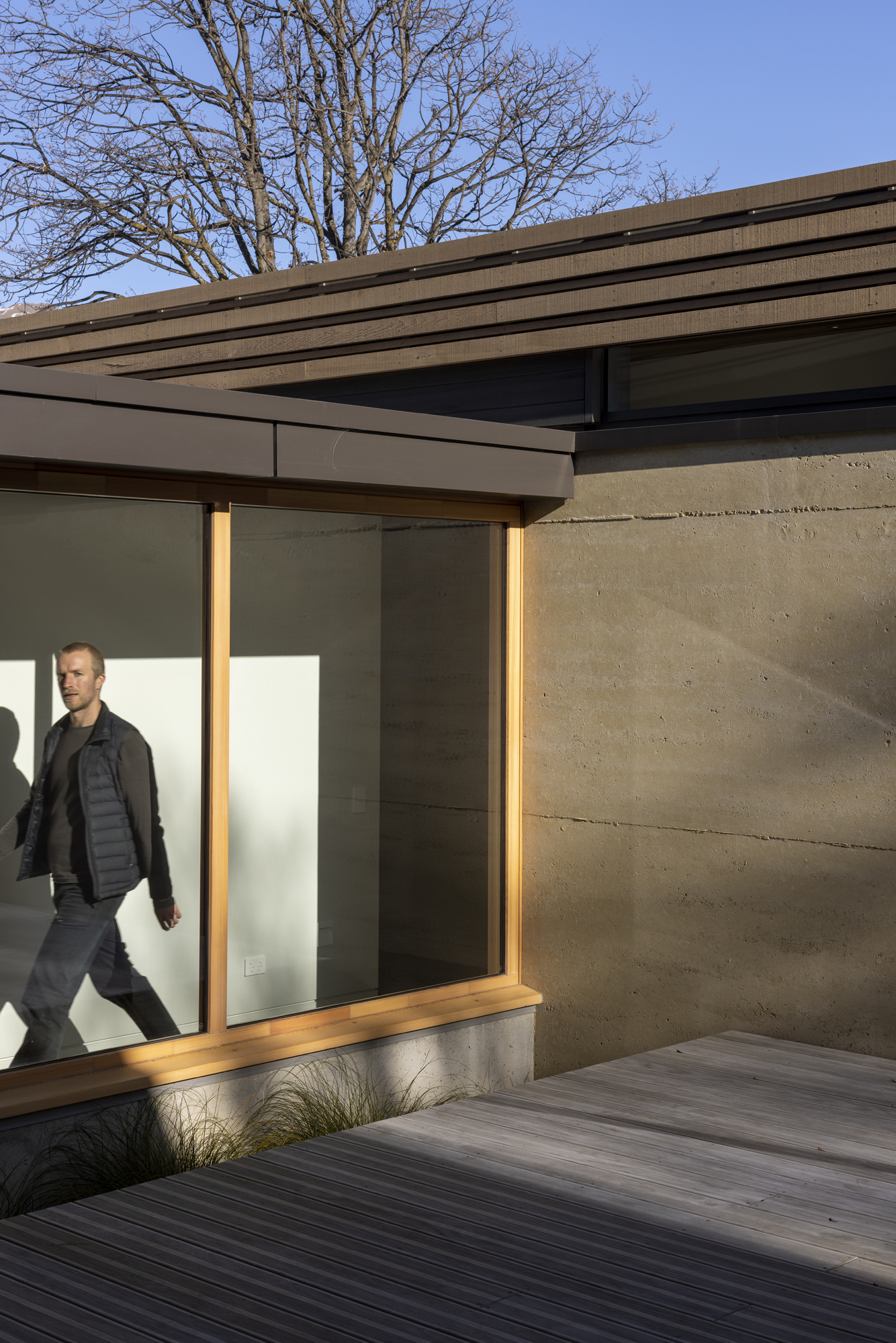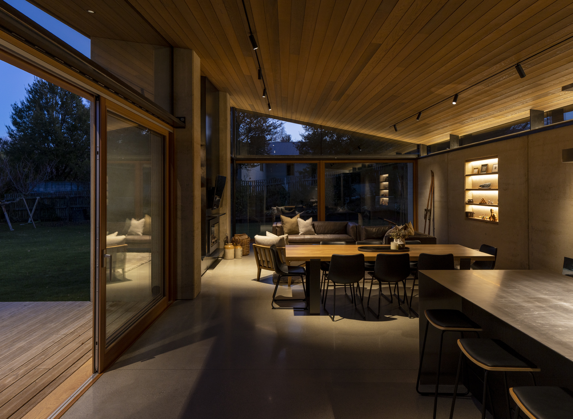 The 500mm earth walls are situated like a simple parti diagram, with a roof that lifts to the northwest and appears to float above. The architecture and detail are outstanding; a well-crafted design that responds to the client’s brief and their thorough understanding of the site. Privacy, comfort and light are all well-considered in this high-performance home.