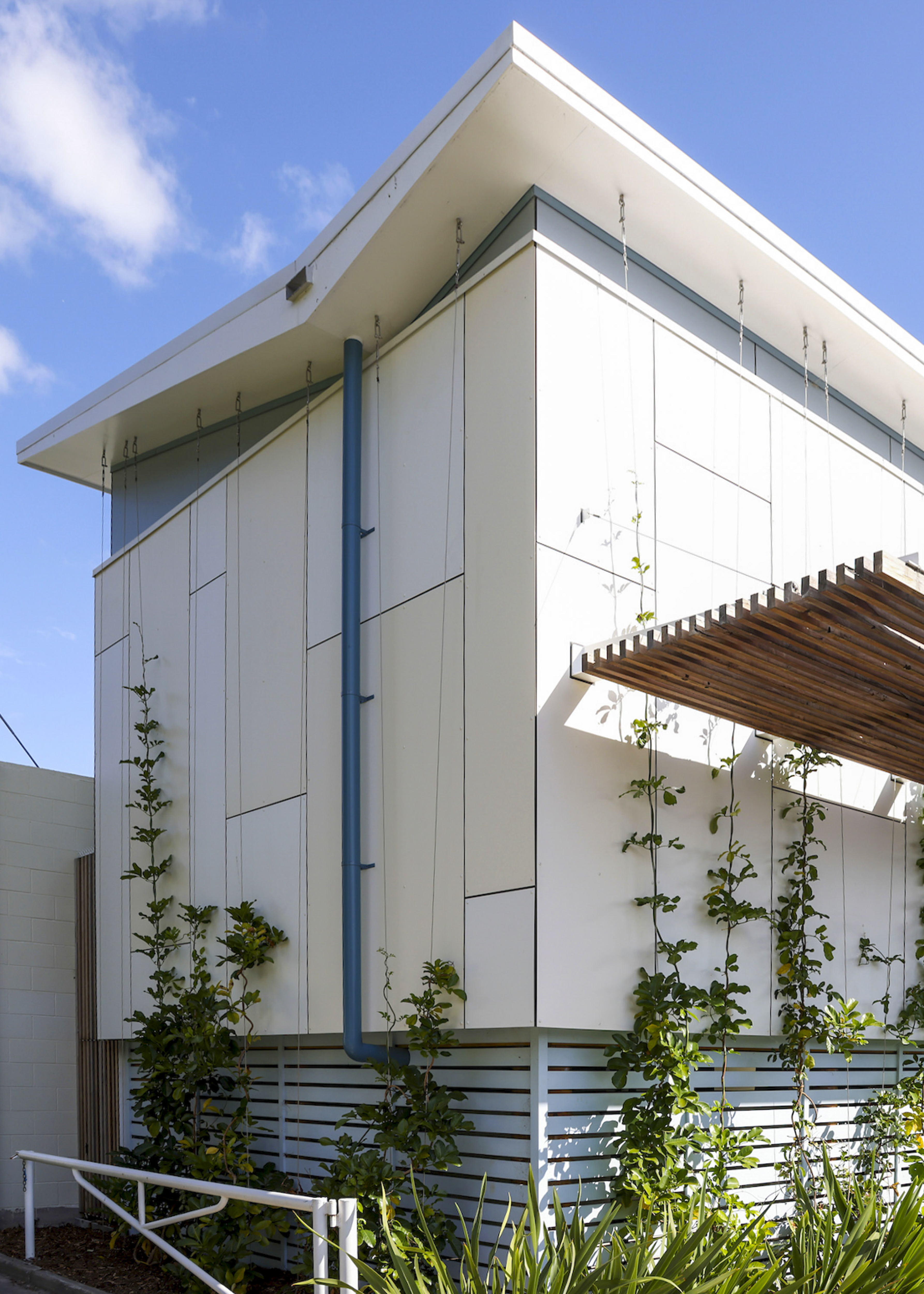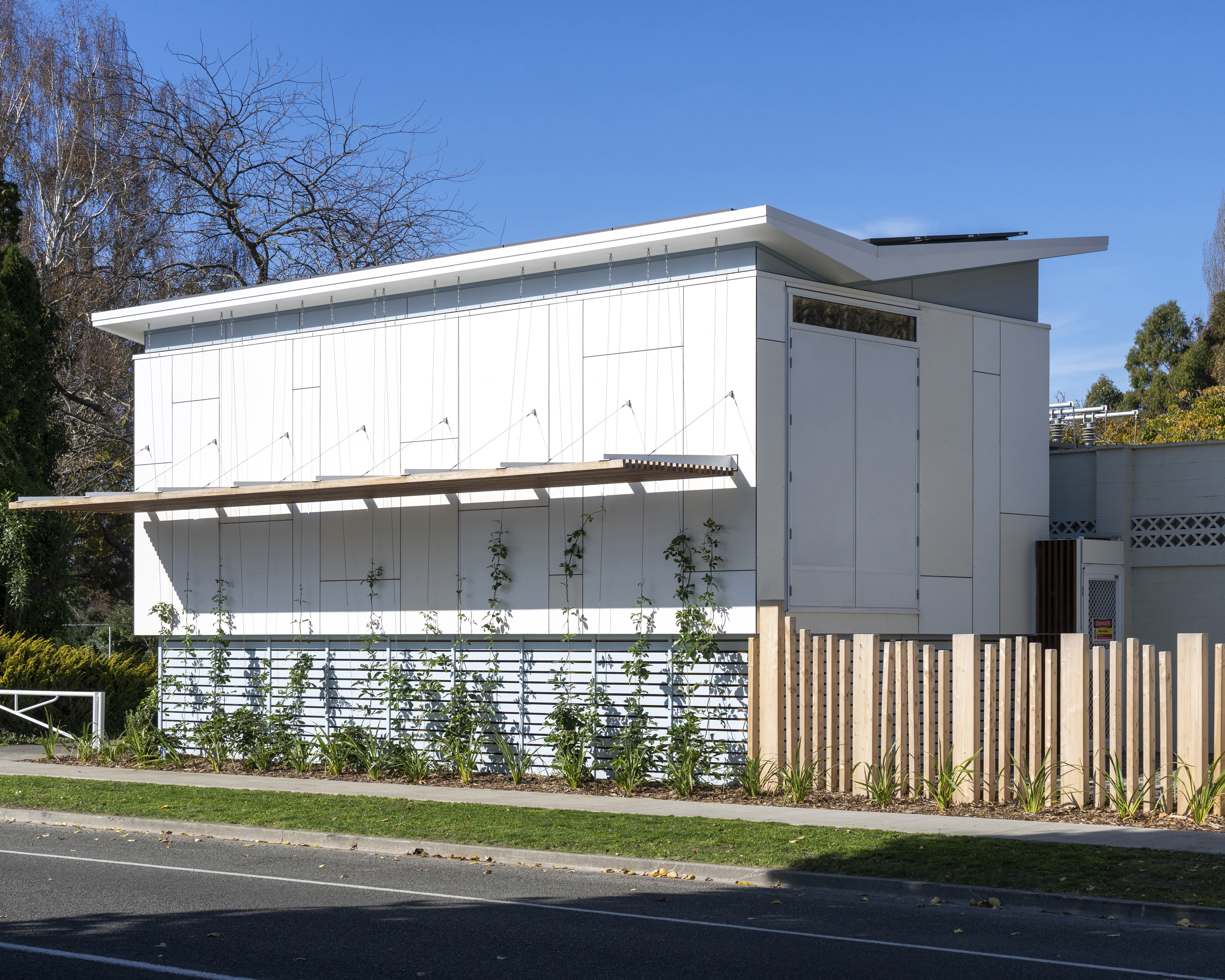 It is commendable to see a return to an understanding of, and need for, well-designed and attractive infrastructure. This switchboard building sits quietly on a suburban street, accommodating some serious electrical hardware and telling a story about sustainable buildings. It’s an example of quiet architecture that fulfils a very functional brief. Architectural expression is given to the building form and composition. Careful thought has been given to the proportions and layout of the simple façade design, including its subtle colours. The building’s apparent simplicity belies the complexities and challenges of creating a truly sustainable building, and in doing so achieving a Living Building Petal.