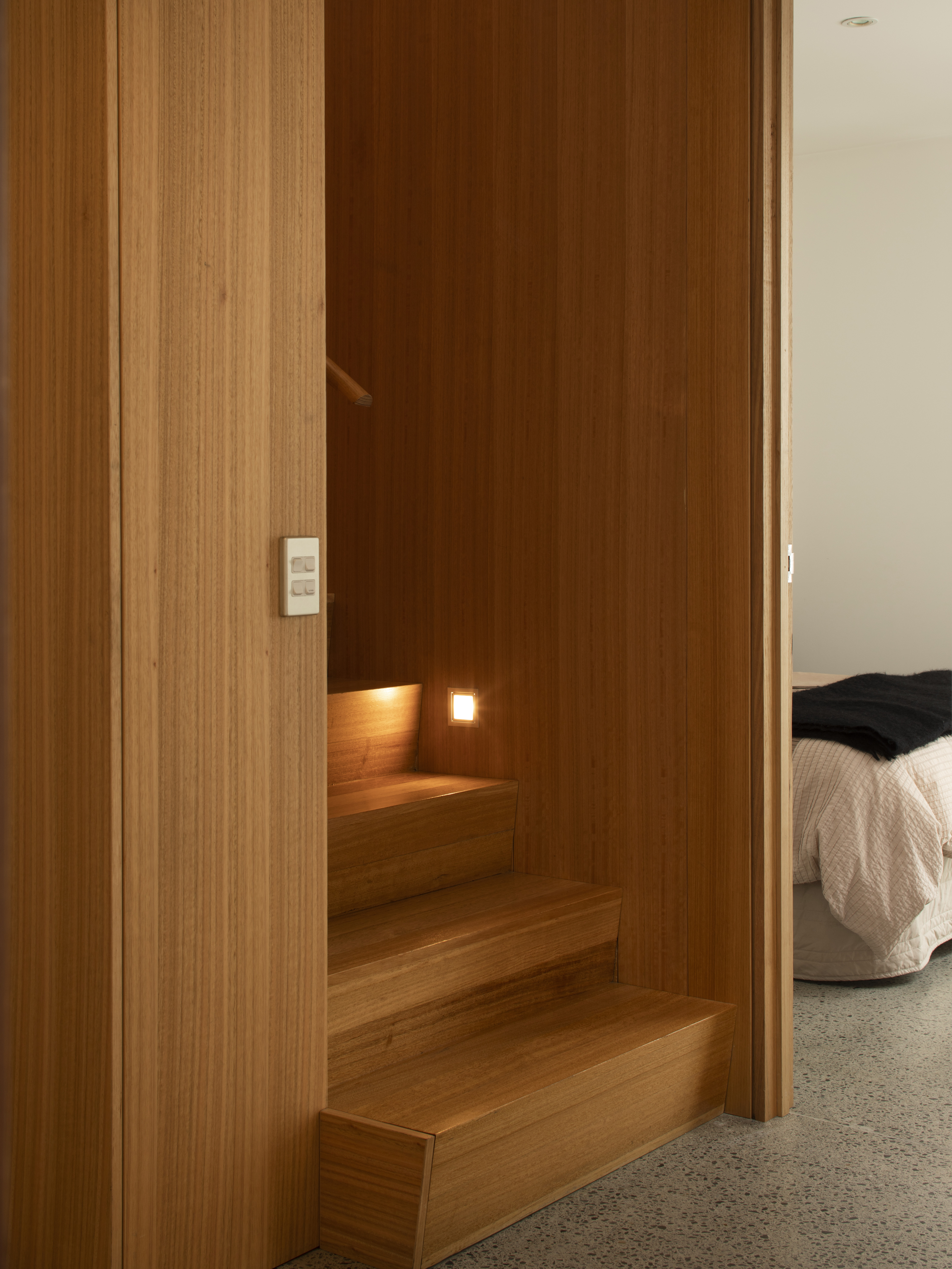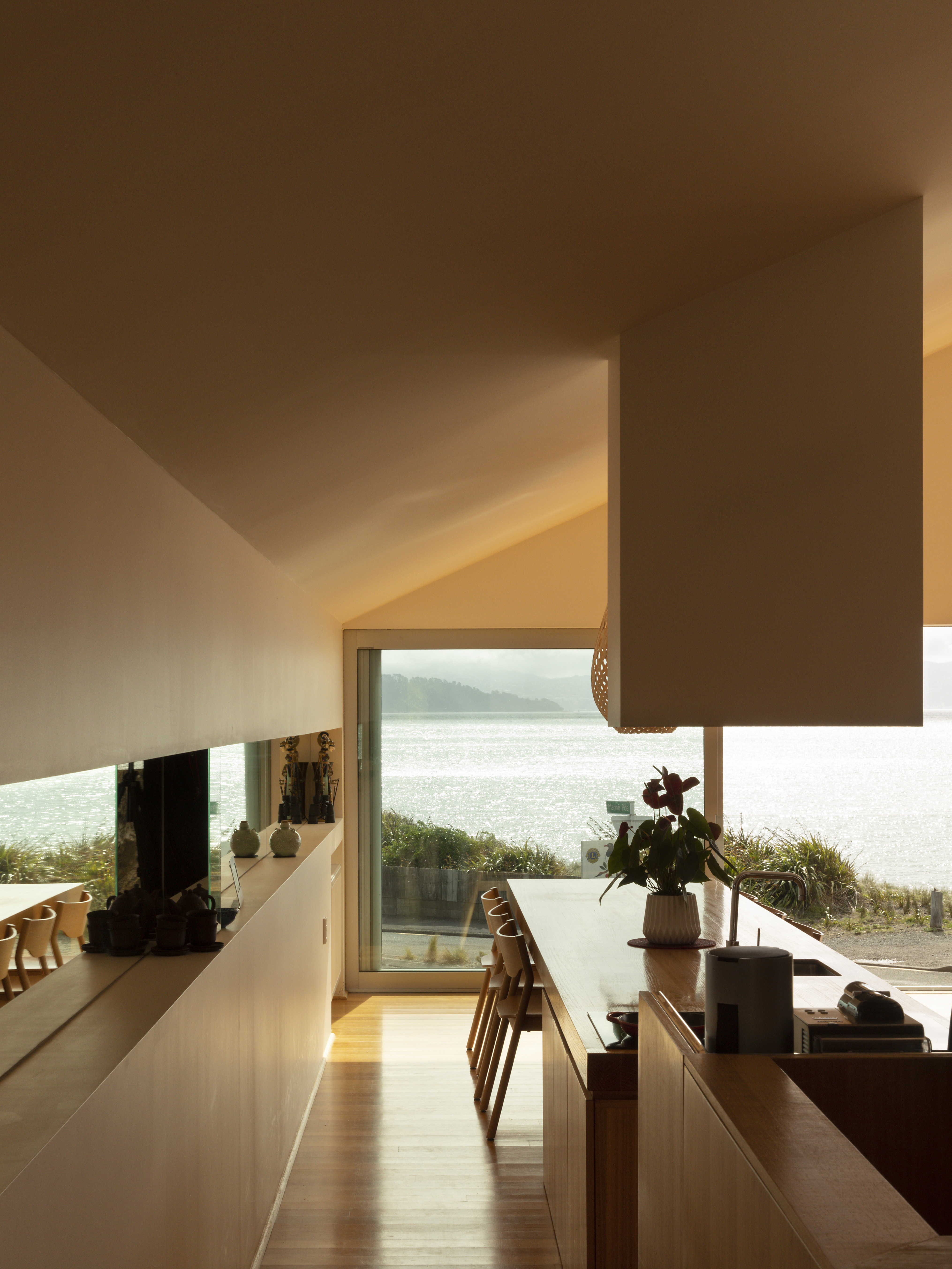 The house at Windy Point sits between a rock and a hard place, but makes the most of this challenge with exquisitely crafted joinery, cunningly clever planning and stunning views out over the wildest water in Wellington. Fully wheelchair accessible, this house pulls no punches and launches serenely confident design on one of the smallest sites we have ever seen. Very clever, very simple, and very beautiful, this house is a wee gem.
