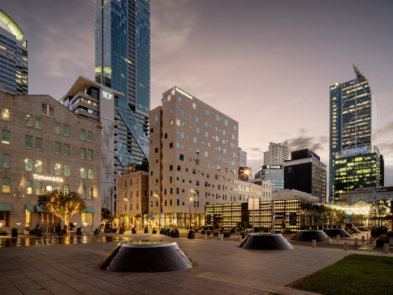 A successful new addition to the cityscape of Tāmaki Makaurau, the Hotel Britomart interfaces gracefully with adjacent heritage architecture, creating intricate spatial experiences for those who move through this building and the laneway it creates. Beautifully planned and executed, the hotel is a place of discovery and delight — from the architects’ reinvention of the hotel room into something clever and unusual yet luxurious, to the seamless integration of its thoughtful exterior with a rich and sumptuous materiality within. As New Zealand’s first 5 Green Star rated hotel, the commitment and passion of client, contractor and architects to design excellence and sustainability through concept, execution and delivery has resulted in an outstanding building for Tāmaki Makaurau.