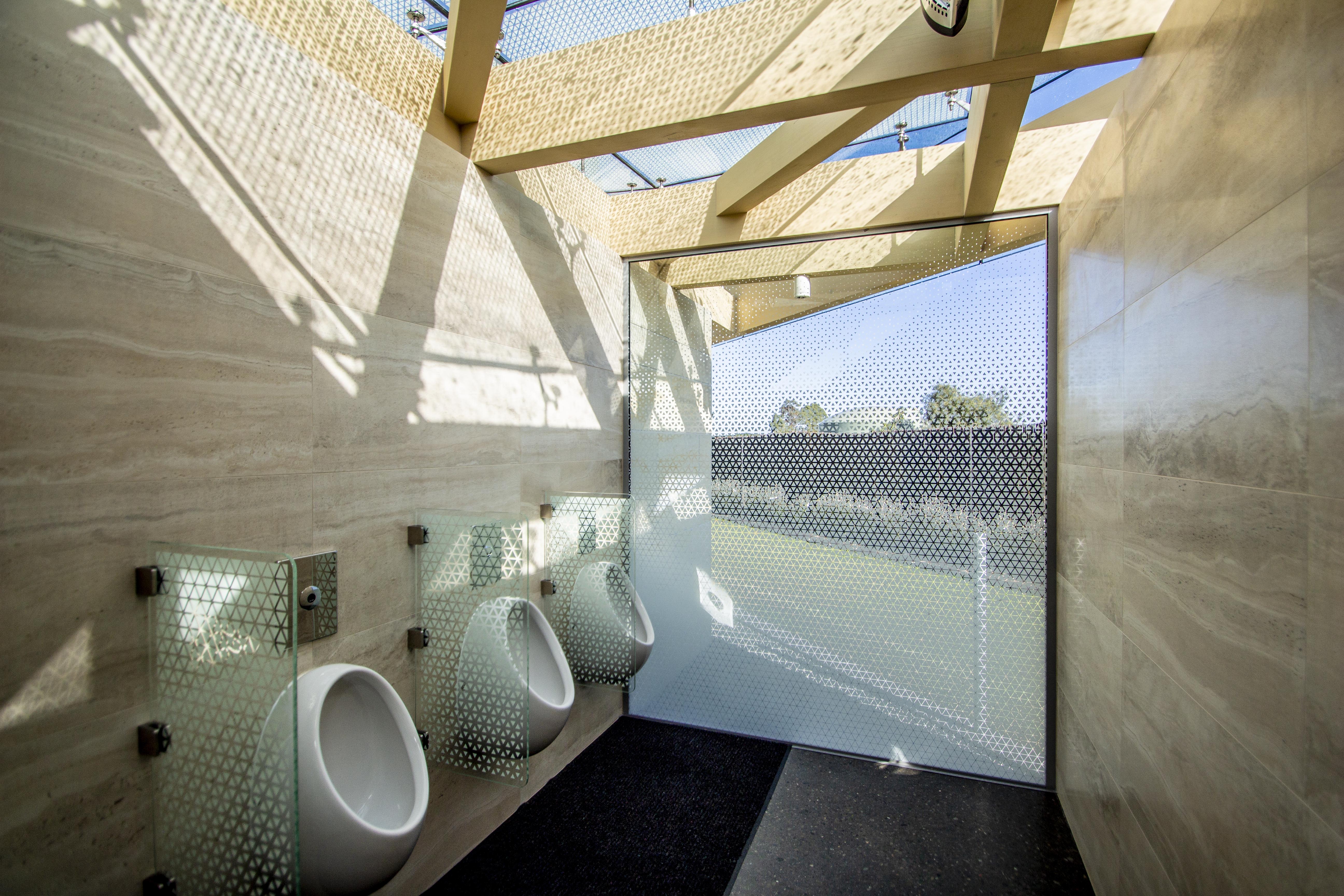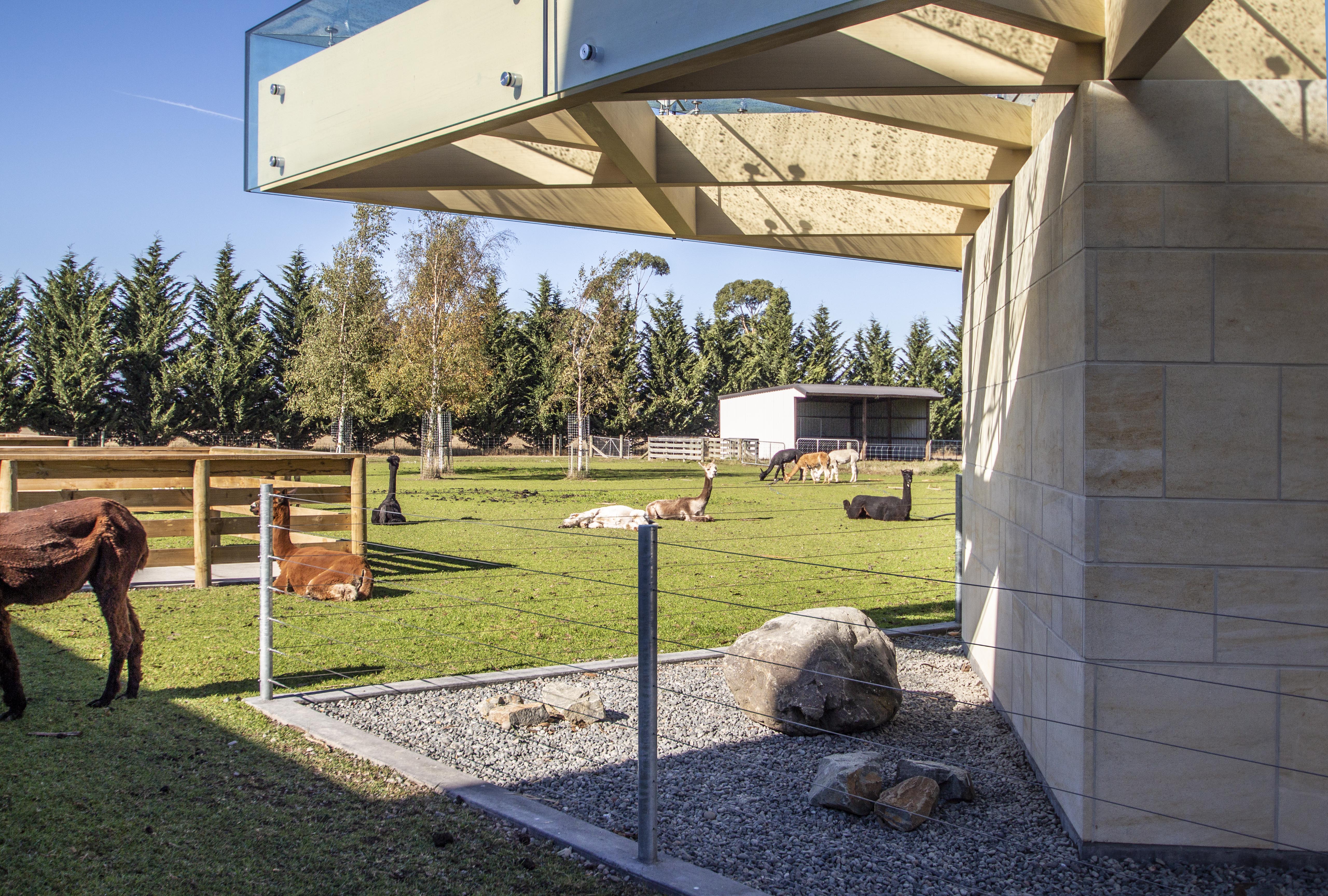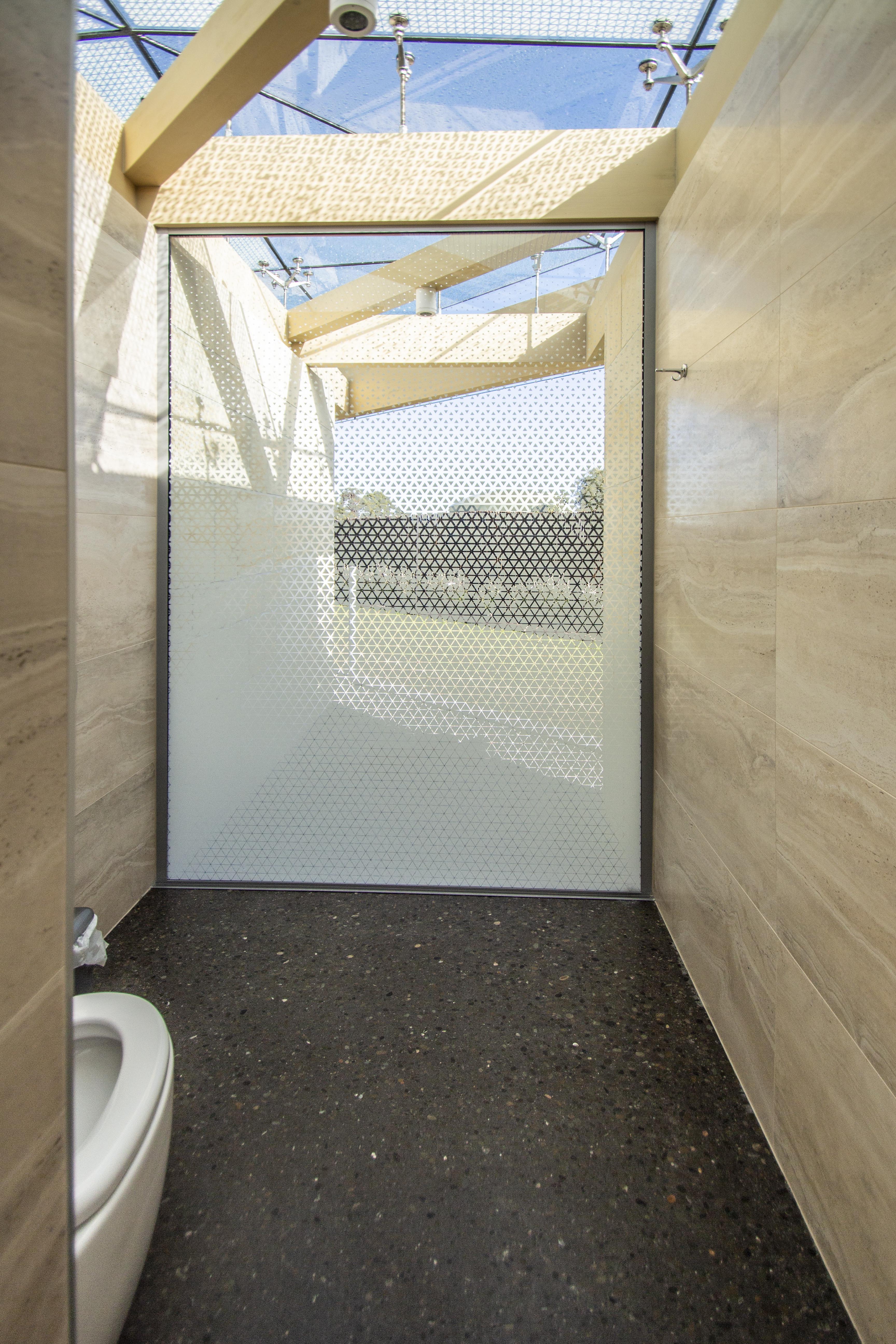 Seldom is the term ‘experience’ associated with an ablutions block, at least not in a positive sense. However, visitors to Farmers Corner are treated to just that. A latticework of exposed glulam beams is perched upon a series of appropriately clad Oamaru