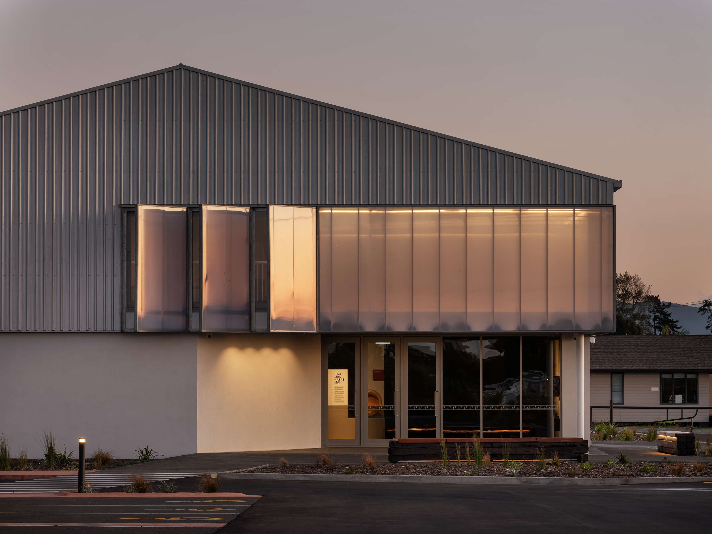 As a symbolic and physical gateway to Te Hiku o Te Ika, Kā Uri comprises a repurposed building that welcomes visitors, hosts events, provides local employment opportunities, supports community programmes and accommodates a waka school. Collectively, Kā Uri embodies a successful and important step in the commitment of Ngāti Kuri to build community resilience, shared prosperity and mana motuhake for its people across the region. Artfully reclad in simple materials atop a new concrete plinth, the arrival façade now presents as an elegant shed. A rhythm of polycarbonate signals entry to the double-height clerestory exhibition space, passing under a beautifully abstracted kauri forest canopy. Details are finely executed and speak to a meaningful relationship between architect and client.