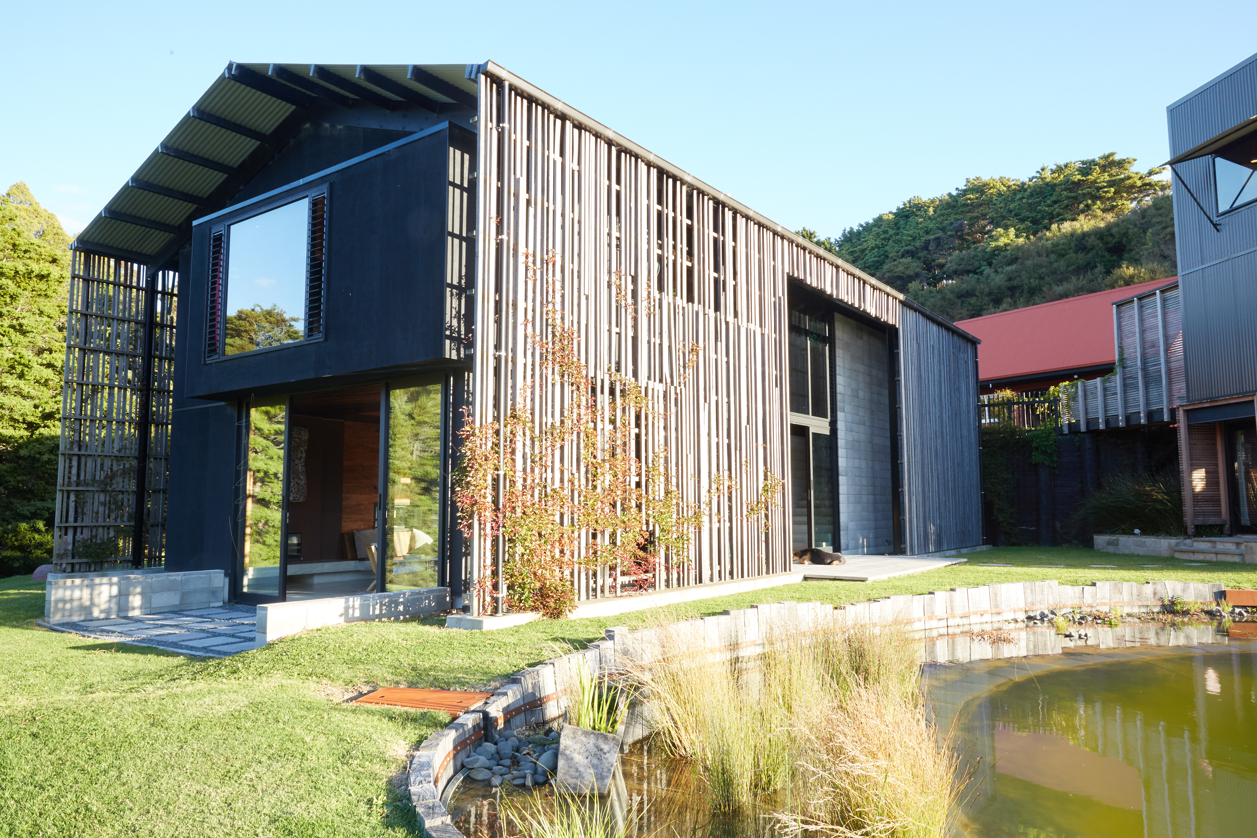 The playful and nostalgic mix of classic barn and vertical forms is arranged with the landscape, rather than on it. Slow reveals and vistas have been crafted from an experiential understanding of moving across and through the site. Inside, layers of darkness and illumination provide deeply personal spaces alongside shared areas, an experience enhanced by the selection of materials.