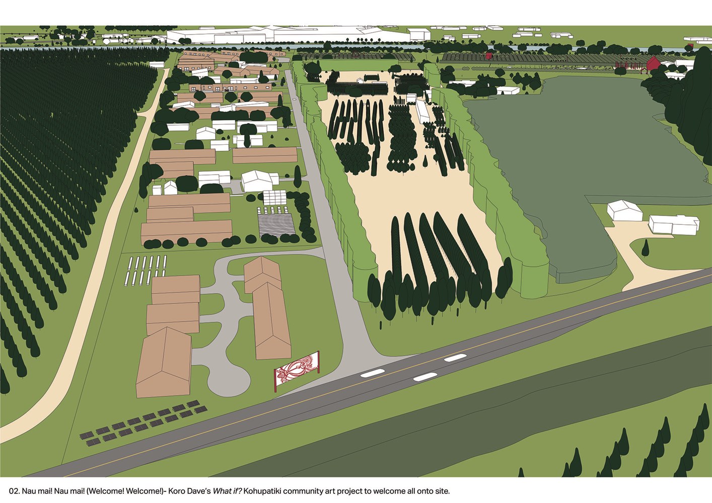 The speculative vision developed in this research project is the result of collaboration with Kohupātiki, a small rural community based in Clive, Hawkes Bay. By establishing collaborative and consultative techniques especially tailored to the inhabitants, and through the expression of various architecture and landscape interventions, this speculative vision seeks to translate dreams and aspirations into productive measures that will improve the quality of the land and the lives of those that occupy it.