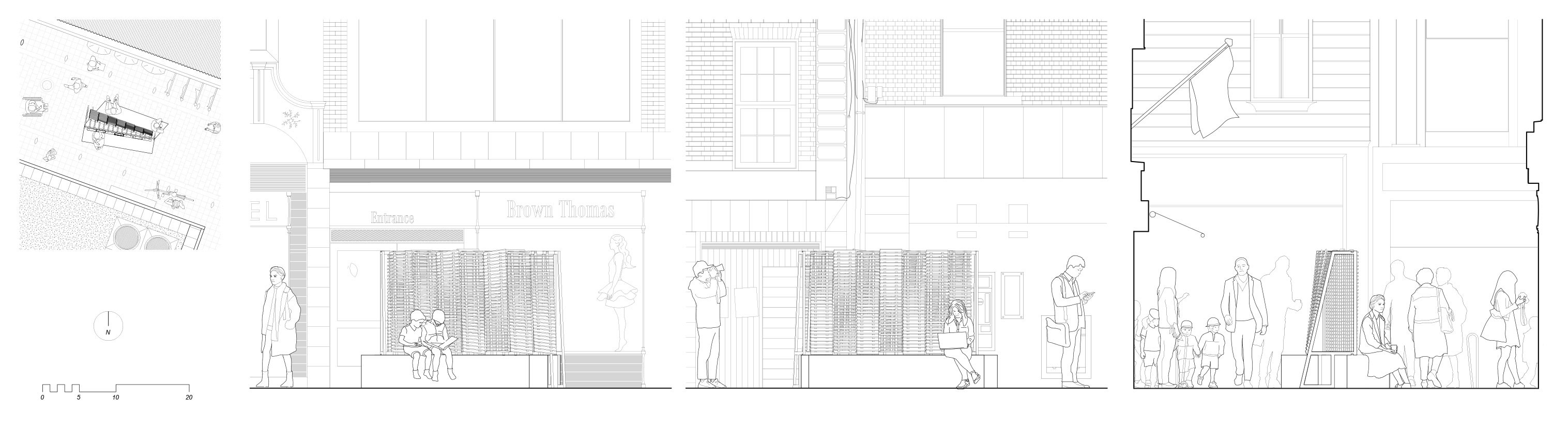 This proposal has no shortage of ambition: it is an architectural response to, or rather, translation of, a canonical work of modern literature – James Joyce’s Ulysses. The project was impressively presented, with beguiling fluency and discursive wit. The presentation convincingly made the point that architecture can be a very effective communications tool. The project explored the notions of the variousness of points of reference and the subjectivity of response – concepts which are explored in Ulysses and which attach themselves to architecture as well. Patrick, our translator, demonstrated his comfort with the ambivalences of translation, reminding us that the hero after whom Joyce’s masterpiece was named was renowned as “a man of tricks and turns”.