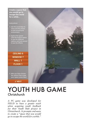Undertaking three real-life case studies focused on rangatahi (youth), our approach acknowledges rangatahi as experts in their own right — just as architects are experts in spatial design. An essential part of an architect's expertise is communicating, and we explored how this communication can be enriched through redesigning the way we engage, especially by focusing on collaboration and co-opting emerging design tools such as computer games, virtual reality and augmented reality.