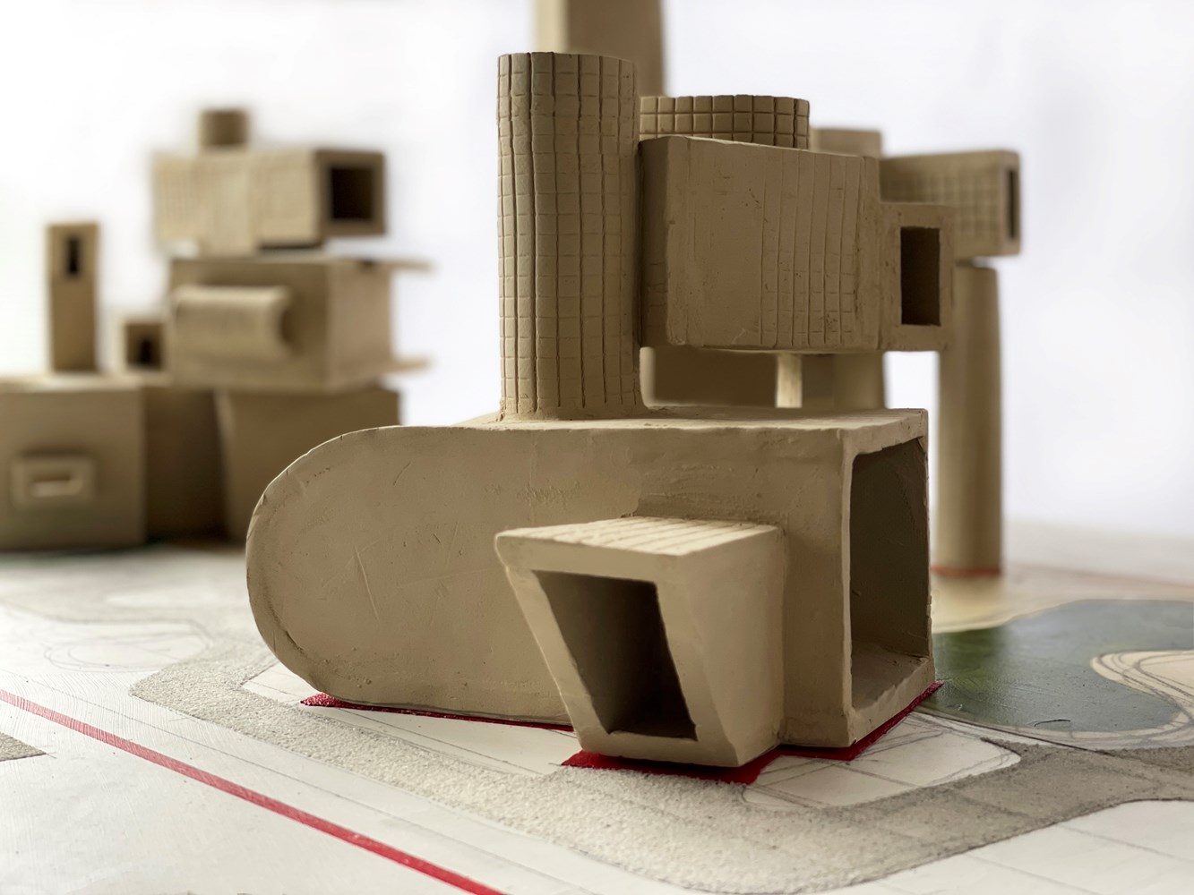 While the contingencies of life coloured our togetherness with concern, affection, and sadly passing in José case, I turned to ceramic media to better investigate and experiment with architectural themes I felt subsisted with both artists' work and our relating. Clay, with its capacity for malleable and impressionable reworking, spoke to me of memory—fragile at first but robust upon firing. My reworking of clay by hand offered a surrogate kind of record-making and suggested a 'field of memories' could be carried, allegorically, by architectural vignettes.