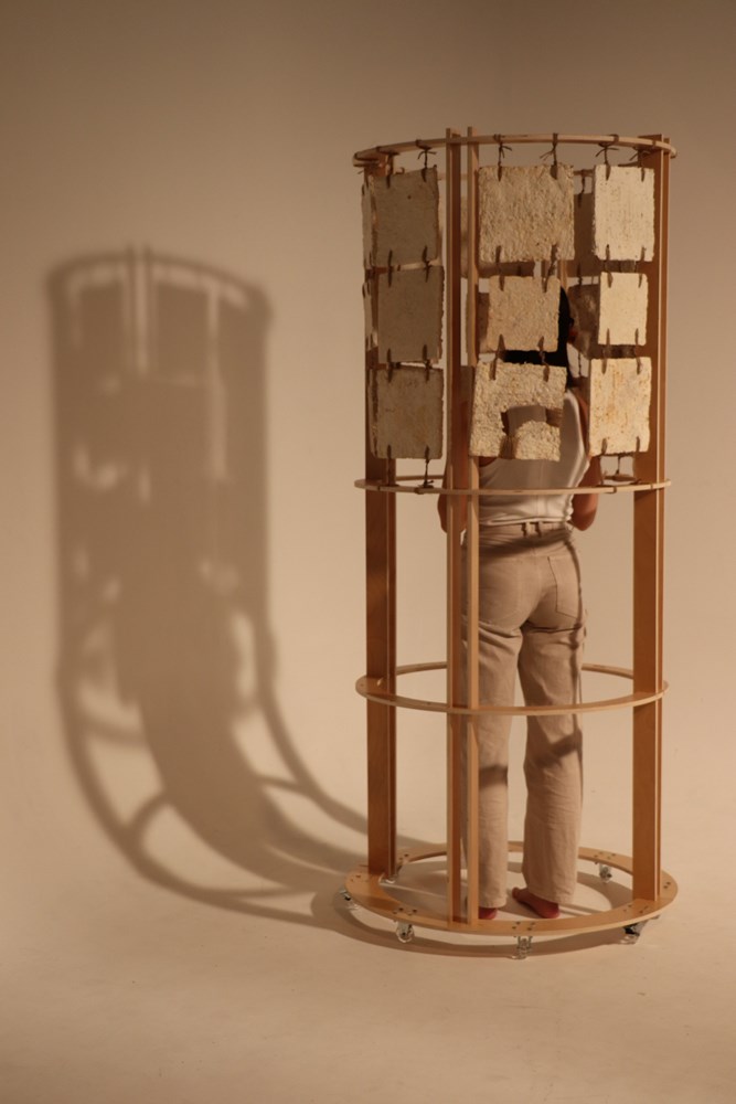 Consequently, the project focuses on exploring perception of mycelium biocomposites. It studies how the senses and proximity affect people’s experience, disgust, and curiosity when facing the mycelium biocomposites in a 1:1 installation and materials exhibition which was designed and grown, in collaboration with the start-up company Mushroom Material.