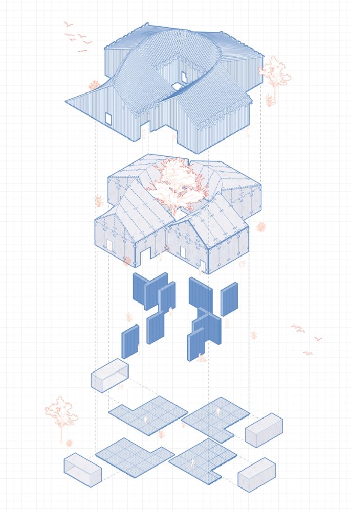 The design-for-disassembly approach is a viable architectural solution to reduce the production of materials and waste associated with the construction industry. Facilities are designed to be flexible and accommodating, so they can be dismantled and reassembled in new configurations to adapt to new sites and community needs. To this end, the project proposes three separate configurations on three different sites to investigate the opportunities and limitations afforded by the architecture.