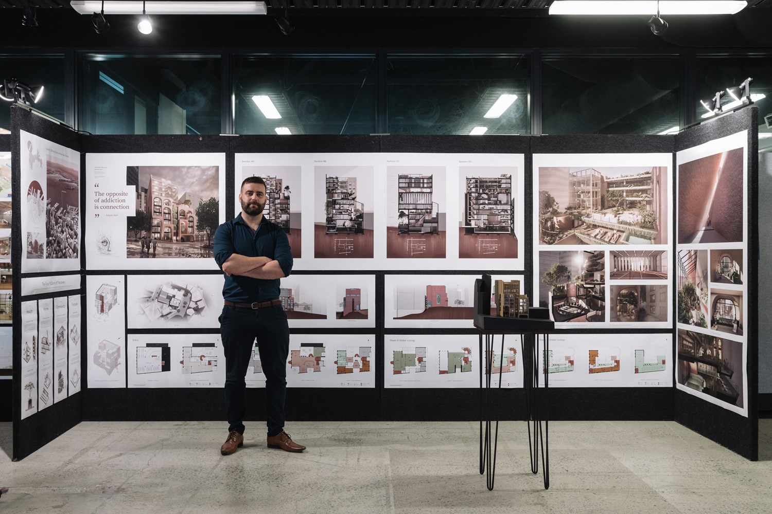 Ciarán O’Neill from Te Whare Wānanga o Wairaka Unitec School of Architecture is a finalist for his project 'A Home For Your Worst Days, The Architecture of Substance Rehabilitation'.