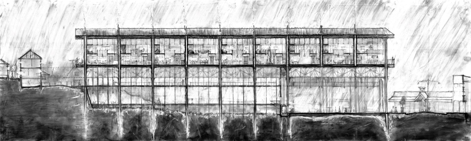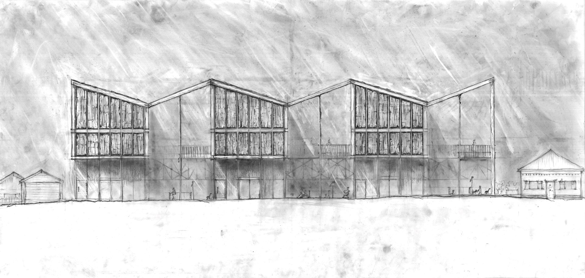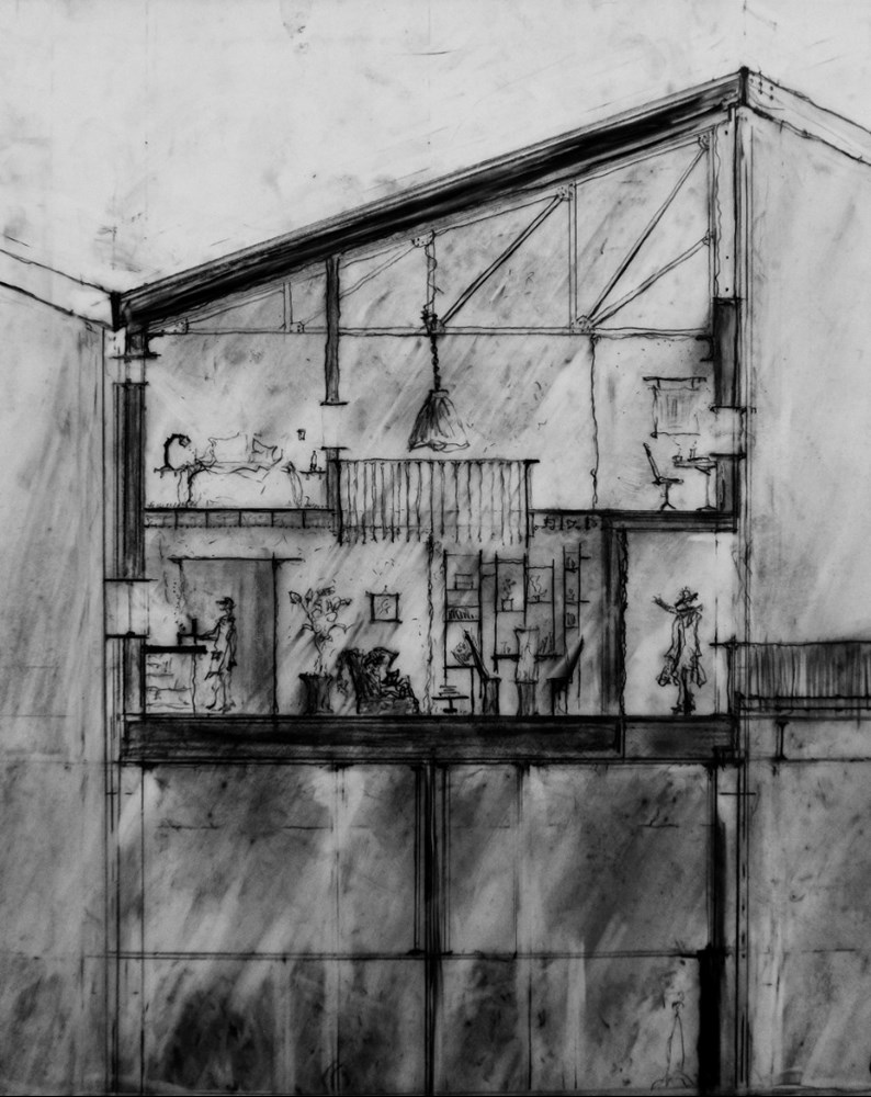 ‘Scrap that’, protests the protagonist in this rescue mission of materials from a bus depot slated for demolition. Through a series of outstanding analogue drawings, Guy articulates a design that utilises this resource-rich urban mine – a centenarian building comprising 540 steel trusses, 339,334 bricks and more than 10,600 square metres of corrugated iron.