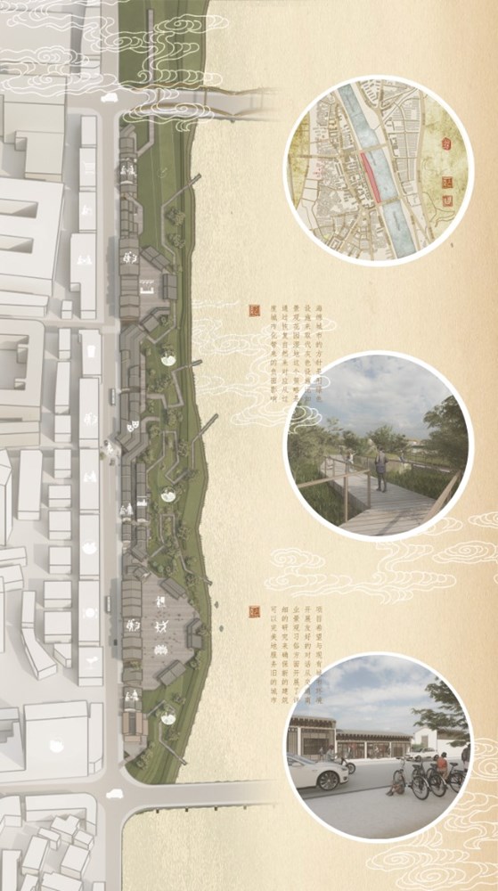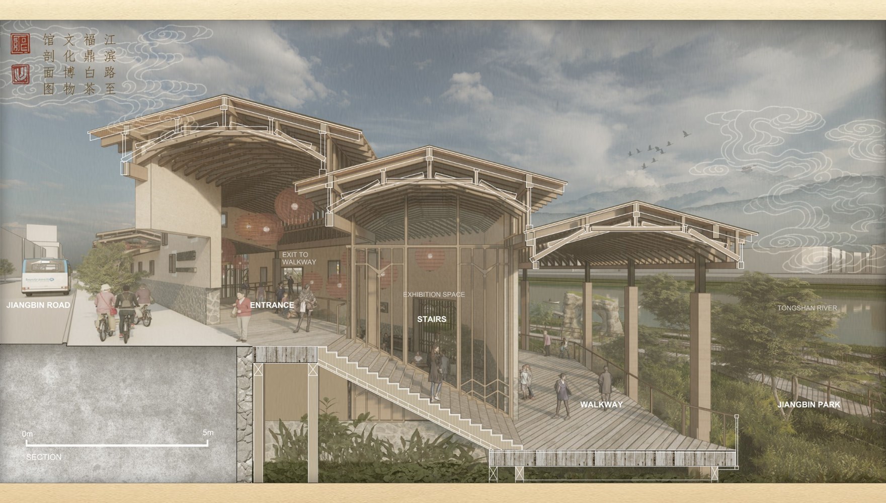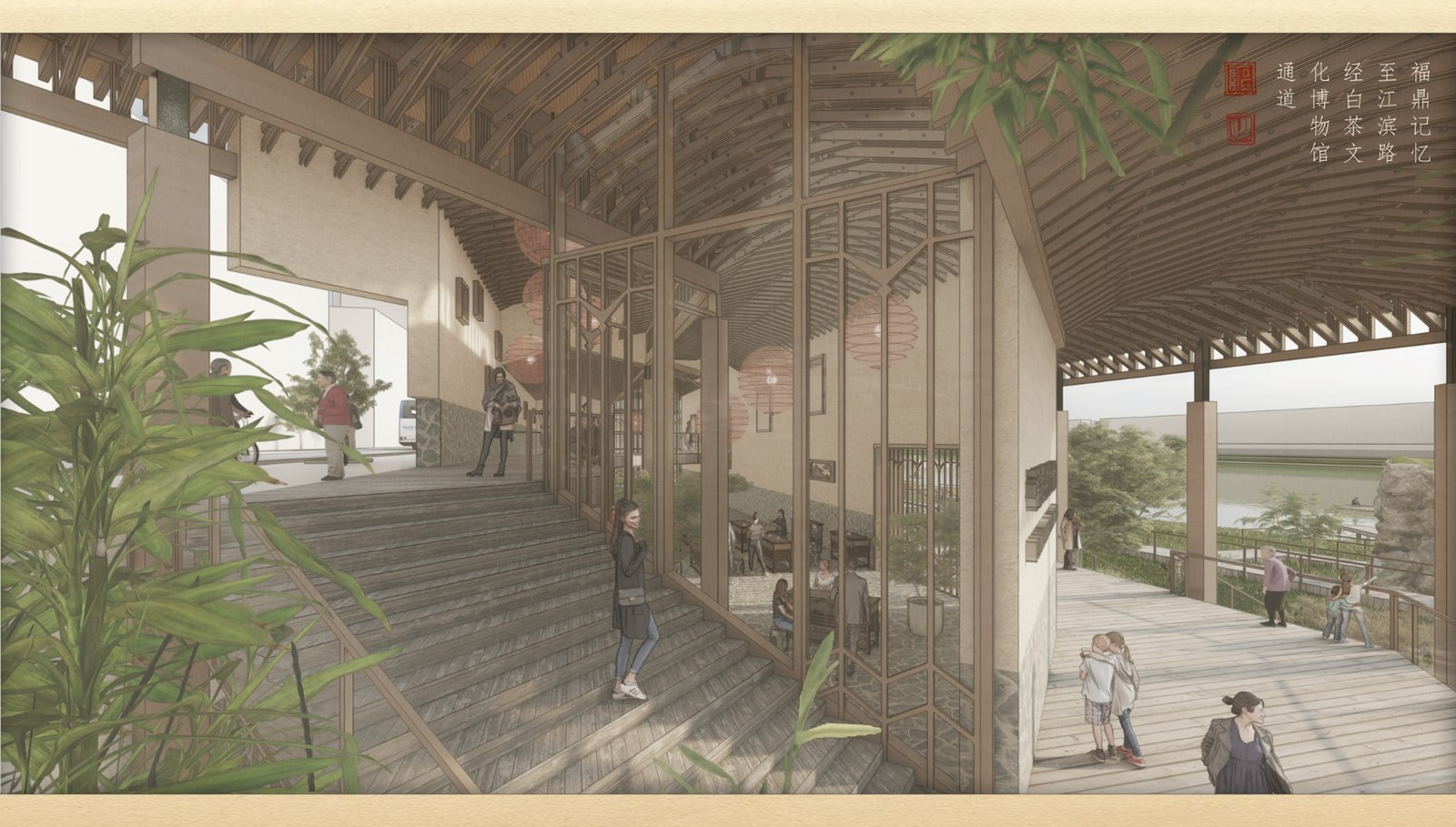 Along the River During the Qingming Festival by Zhang Zeduan is one of China’s most notable handscroll paintings and it presents a traditional Chinese city better than any real scene. This inspired me to create a new image of a Chinese city. Fuding is the small city in Fujian province where I was born, and the predominant design method undertaken to capture it was drawing – carefully reimagining traditional Fujian architecture, including the covered bridge and traditional Fujian dwelling, tulou. Through exploration of the colour palette, composition and variance of form and mass, the design idea began to respond respectfully to both traditional regionalist culture and the modern city. The result is a future vision, achieved by providing an urban architectural intervention and subsequent precedent to inspire Chinese cities and other cities around the world, in the hope of rebuilding a cultural image that we are proud of.