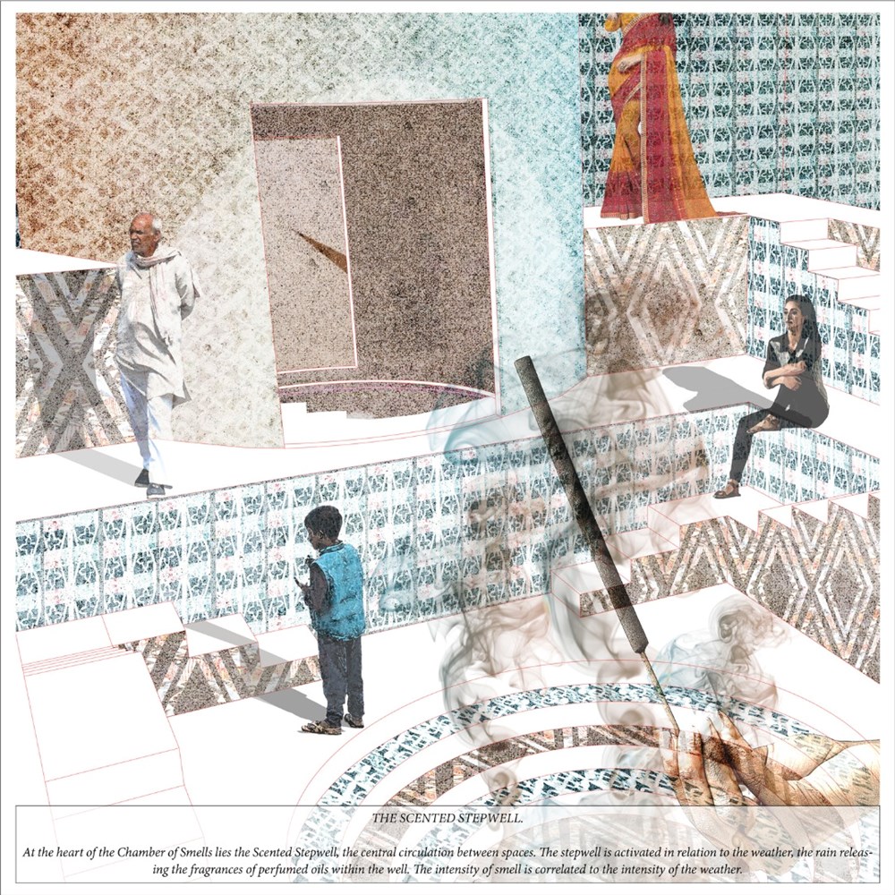 Beautifully executed architectural interventions in each of these seemingly disparate worlds mirror each other, and both use the olfactory to stimulate memory and connection. Collage takes precedence – fragments of memory are extrapolated and layered to create understanding in their reference and interpretation.