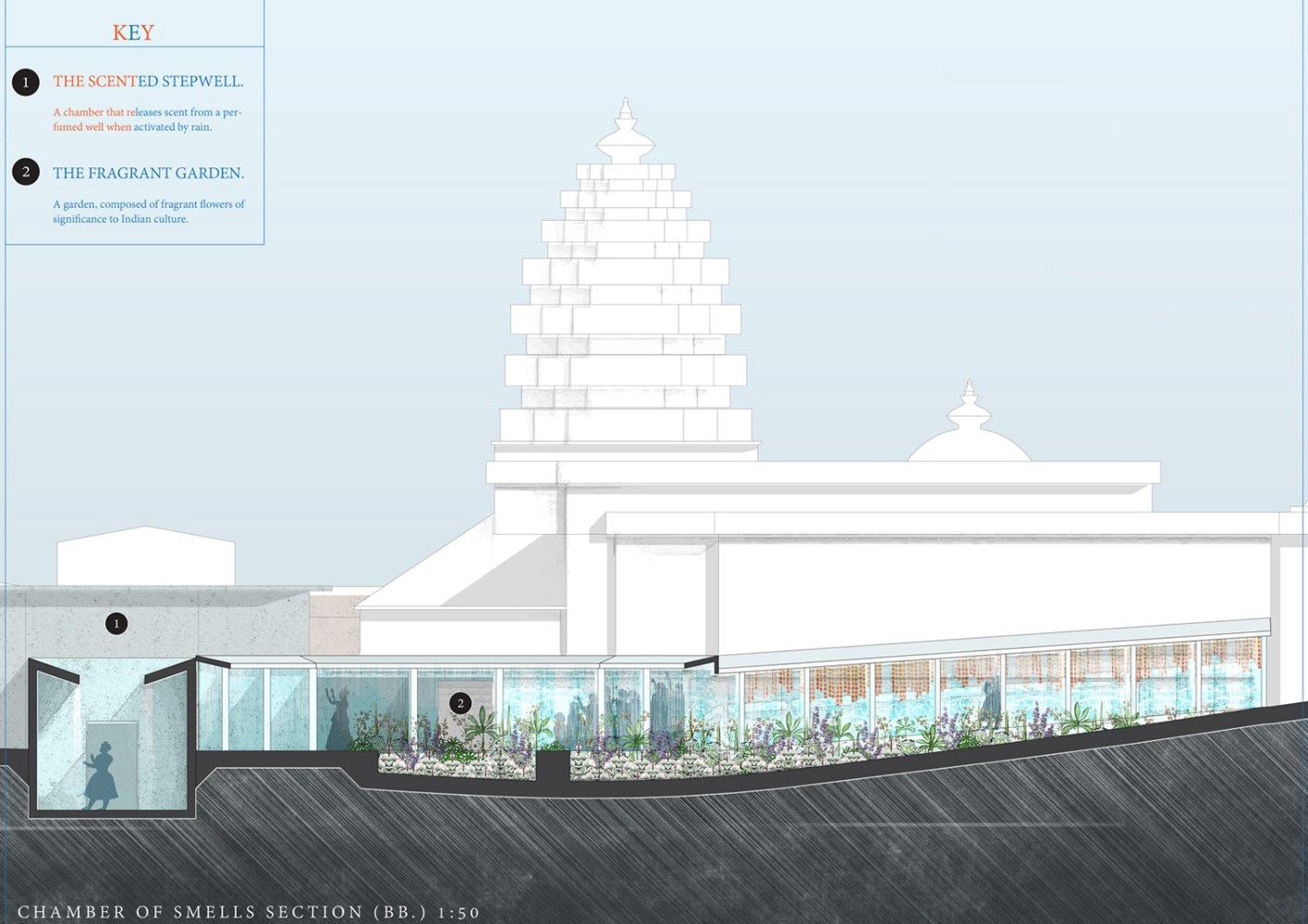 “Where You From?” is realised through two designs. Both designs are nondescript in program; emphasis is instead placed on the prioritisation of scent. The Chamber of Smells is an extension to the Bharatiya Mandir Hindu Temple in Sandringham, Tāmaki Makaurau Auckland; the Vidyapith Commune is an adaptive reuse project of a closed school opposite my grandparent’s home in Durgasarobar, Guwahati Assam.