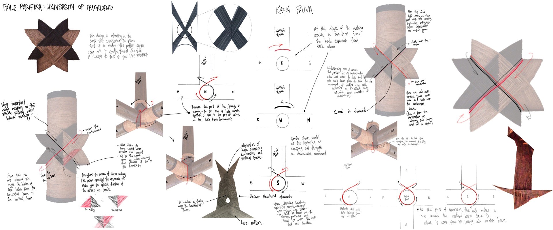 Lalava is a form of Tongan construction that consists of lashing two lines of kafa (sennit), a braided rope made from the inner fibres of the coconut husks. The lines intersect one another repeatedly, circling up and down to form geometric patterns as it binds. This thesis investigates lalava making from an auto-ethnographic perspective, learning through making and unravelling the Tongan cultural knowledge that lalava embodies.