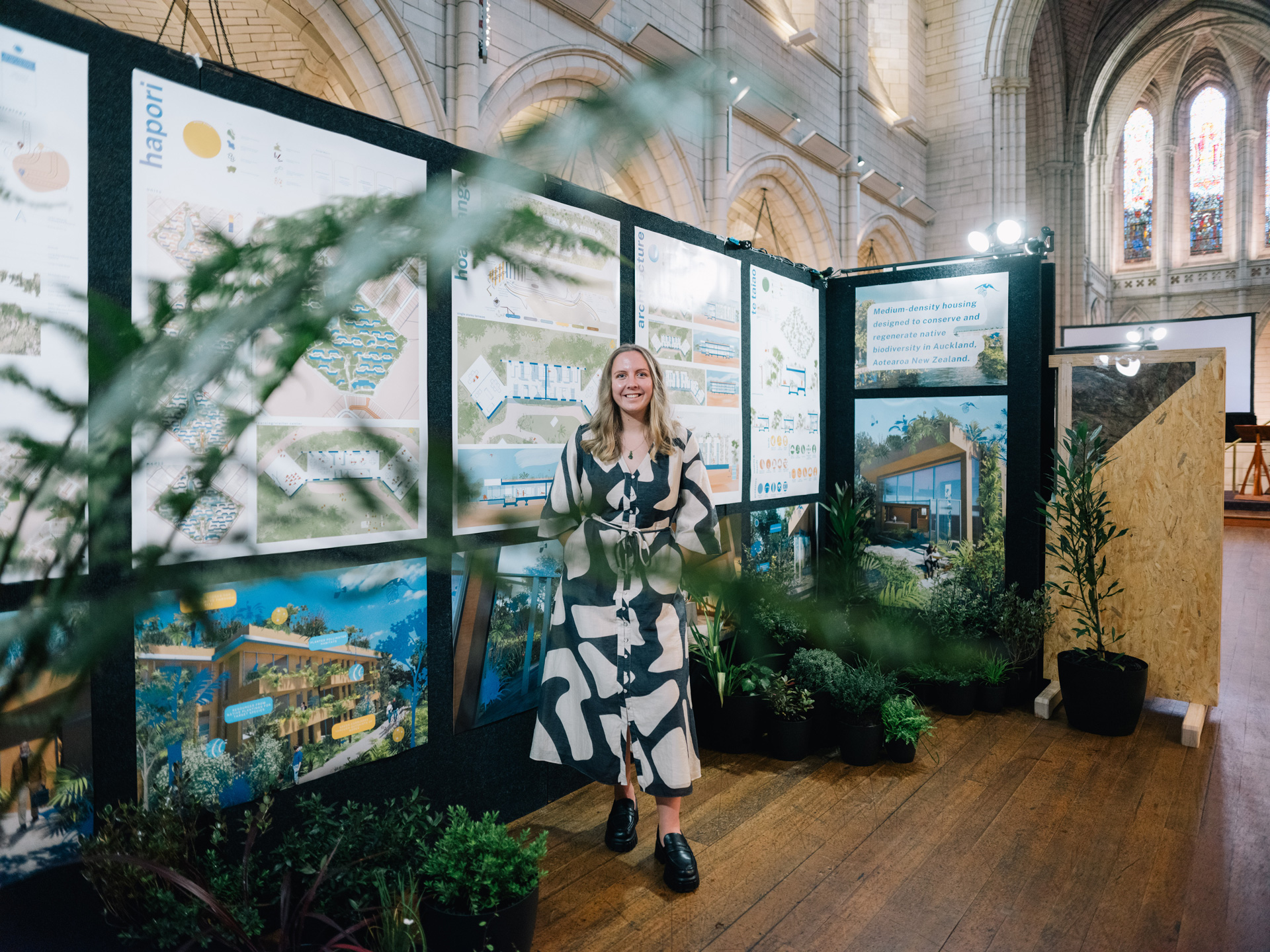 Robyn Kay Du Preez from Te Wānanga Aronui o Tāmaki Makau Rau Auckland University Of Technology, School of Future Environments—Huri te Ao is a finalist for her project 'The Reconnected: Medium-density housing designed to conserve and regenerate native biodiversity in Auckland, Aotearoa New Zealand'.