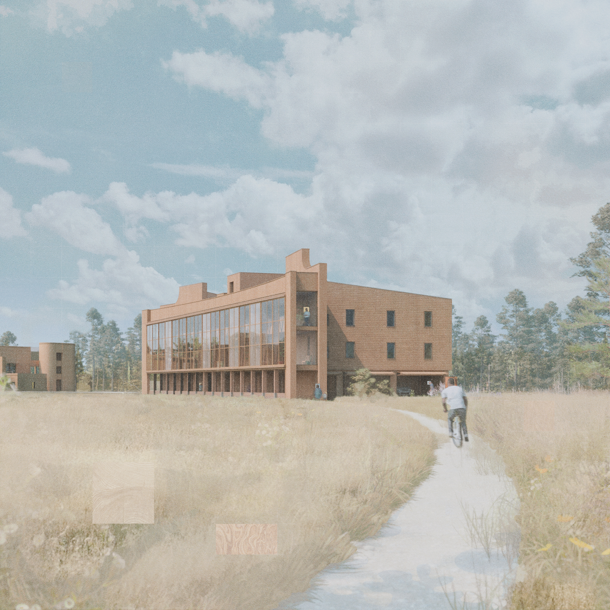 Grainform revives Aotearoa’s historic ability to grow, manufacture and use its own timber. The project proposes a new mass timber housing chain that considers the entire process from forest to dwelling. Represented symbolically by the circle and the line, it brings together two architectural components, a ring of housing and a linear factory extension. Together, these elements explore how forestry, industry and housing might reconnect through design.