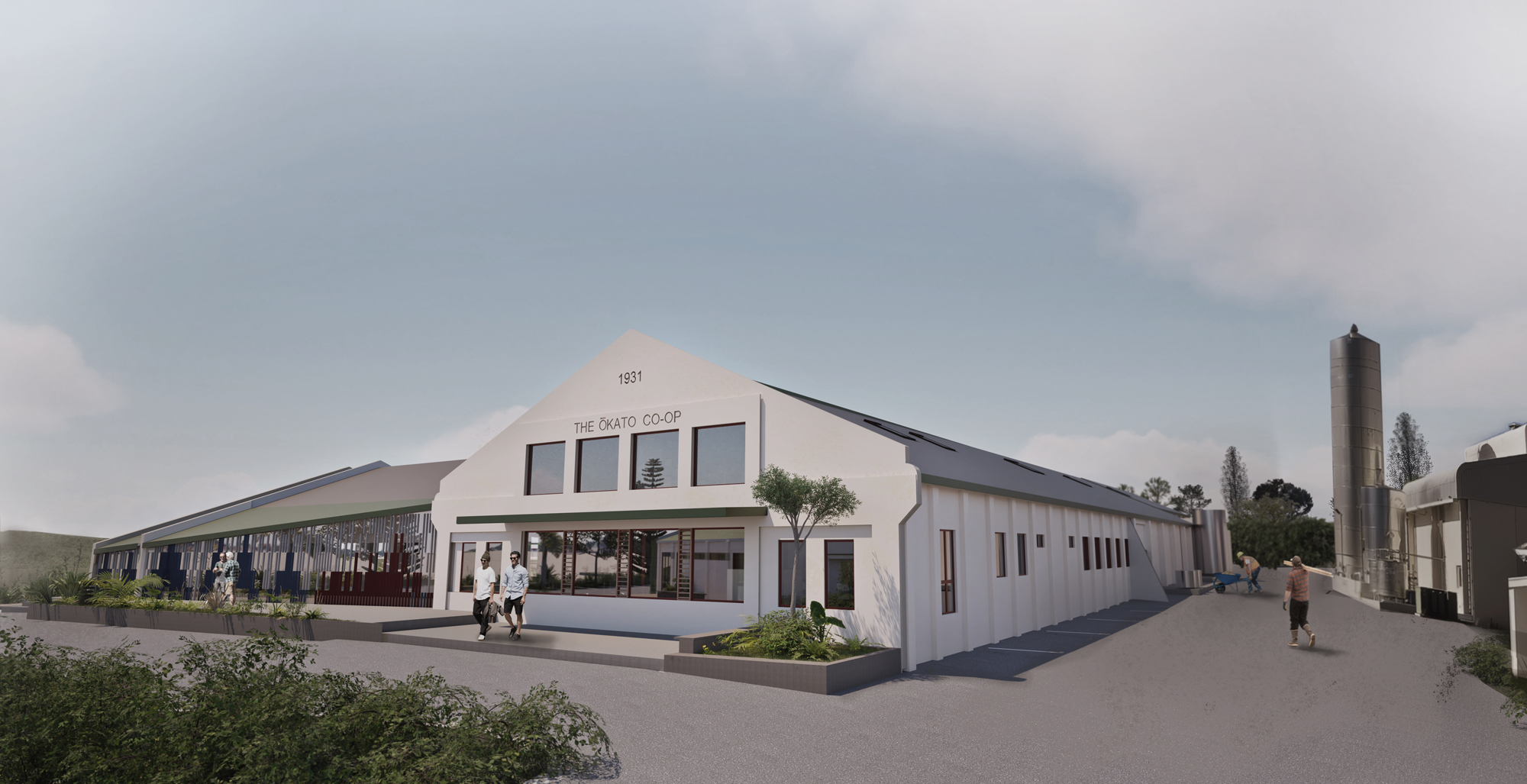 Disused dairy factories, scattered all over Taranaki, are stark reminders of the impacts of colonisation, land loss for Māori, and the destruction of thriving forest ecosystems. The former Ōkato Co-op Dairy Factory, located on State Highway 45, is one of these and provides an opportunity to address some of these issues by reimagining it as a community-led hub for hempcrete production, education and recreation.