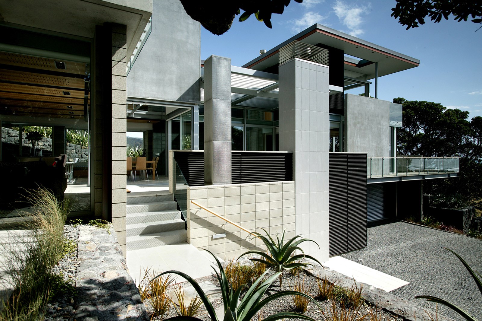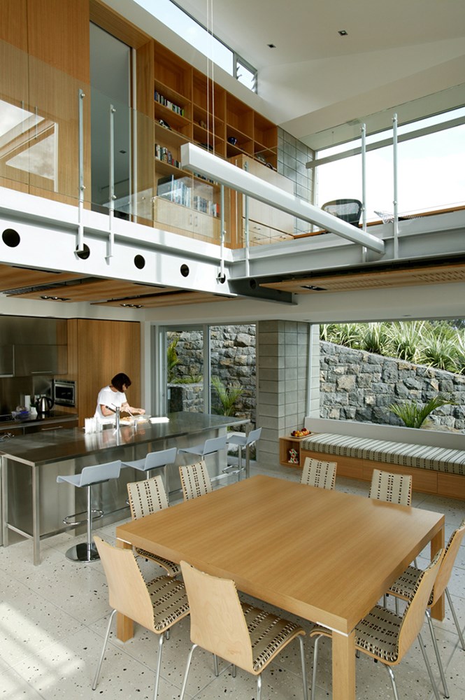 This is a house or description of one that perhaps appears familiar at first – a concrete block and glass pavilion, set behind or in amongst a group of pohutukawa trees overlooking the magnificent West Coast. The experience is however both surprising and inspiring for the way it deals with this abundance of fortune. Two key views or reference points structure the plan creating both beautifully framed views out as well as across and between the spaces. The interior landscape is in turn arranged around a covered courtyard – this in between realm, not quite inside or out, is a critical exploration in our world – this house adds a fine exemplar to our heritage.