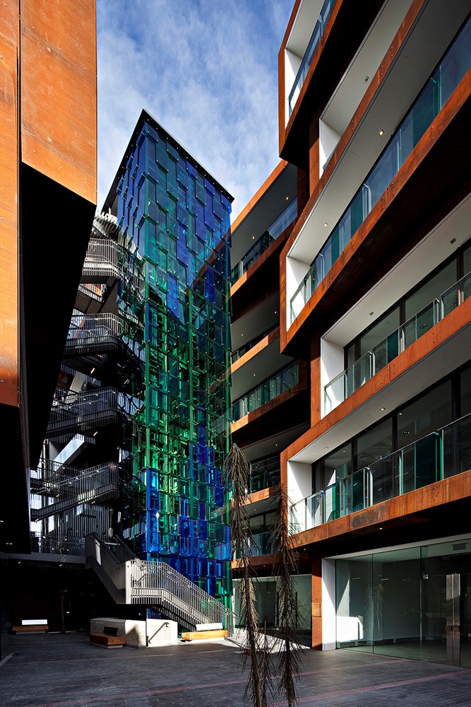 Ironbank represents a rare synthesis of originality, visual impact, functionality and ecological sensitivity. Its towers of stacked boxes have a restless, sculptural quality, and the raw, muscular materials harmonise perfectly with the inner city context. The various occupancies are each afforded a measure of insularity, yet the open circulation encourages a healthy level of interaction. A strong sustainability ethos has driven the project, beginning with the recycling of ninety percent of the site’s existing buildings. It is also manifest in the use of natural ventilation and natural light, and the cleverly conceived, space saving carpark. The building is a rich, groundbreaking and thrilling tour de force.