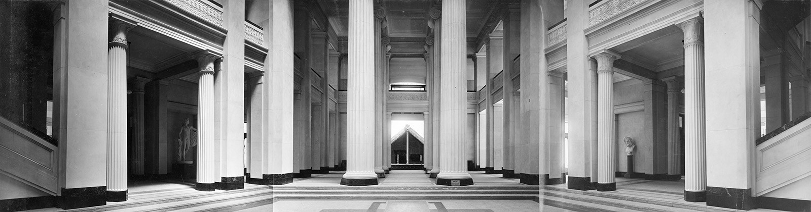 In a way, Mitchell set out to subvert the architectural relationship expressed in this photograph, taken in 1929. It shows the interior of the just-built Auckland War Memorial Museum, with the meeting house Hotonui preserved, or incarcerated, inside it. In other words, the photo shows a building that could only have been from here contained inside a building that could have been from anywhere. Mitchell’s use of this image also reminds us how slow Modernism was to arrive in New Zealand. The museum would have been right at home in the nineteenth century.
