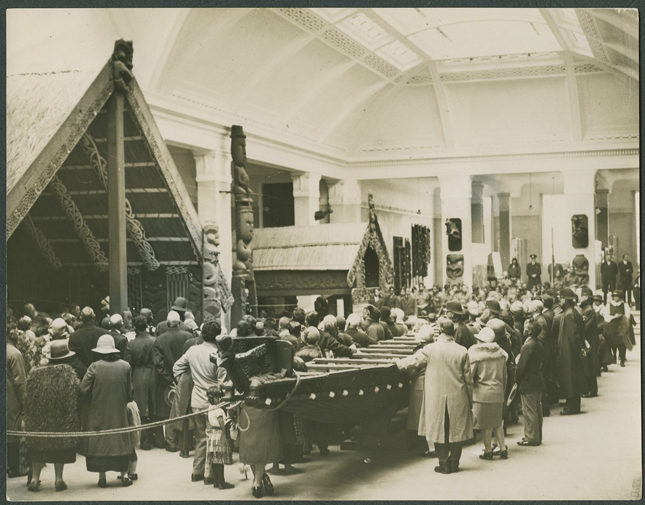 The Auckland War Memorial Museum was built to commemorate the 18,000 New Zealanders killed in the First World War. This neoclassical building, with its Doric columns and Portland stone façades, was completed in 1929, the year in which Mies van der Rohe’s Barcelona Pavilion was realised, and six years after Le Corbusier’s Vers une Architecture was published. The Auckland Museum housed Maori artefacts, a wharenui (meeting house), pataka (storehouse) and waka (canoes). As Nicholas Thomas[6] has pointed out, remarkably such collections have survived the changes in architectural and curatorial fashions to emerge as the stable foundations of the museums that store them. In the New Zealand Pavilion at the 2014 Venice Architecture Biennale we have reversed the original act of cultural cannibalism by commissioning a carved whata-a-rangi, “a small pataka elevated on one tall post,”[7] in which to display a model of the museum.