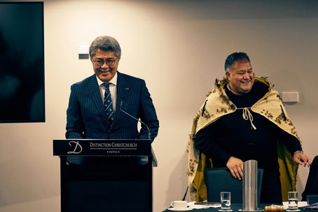 Wearing a korowai gifted by Dame Whina Cooper to his mother, Huia Reriti (Ngāi Tahu) was announced the new Perehitini (President) of Te Kāhui Whaihanga New Zealand Institute of Architects.