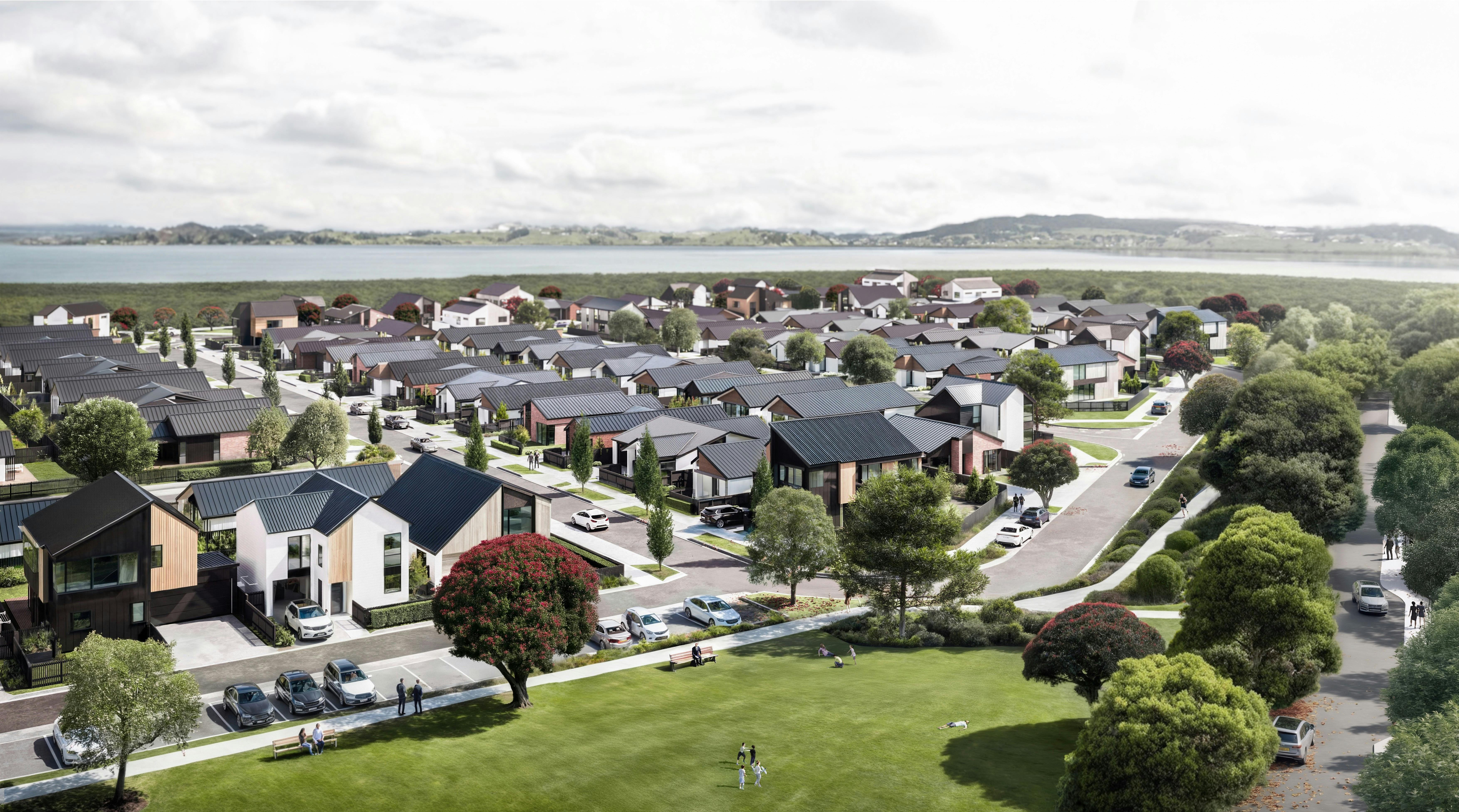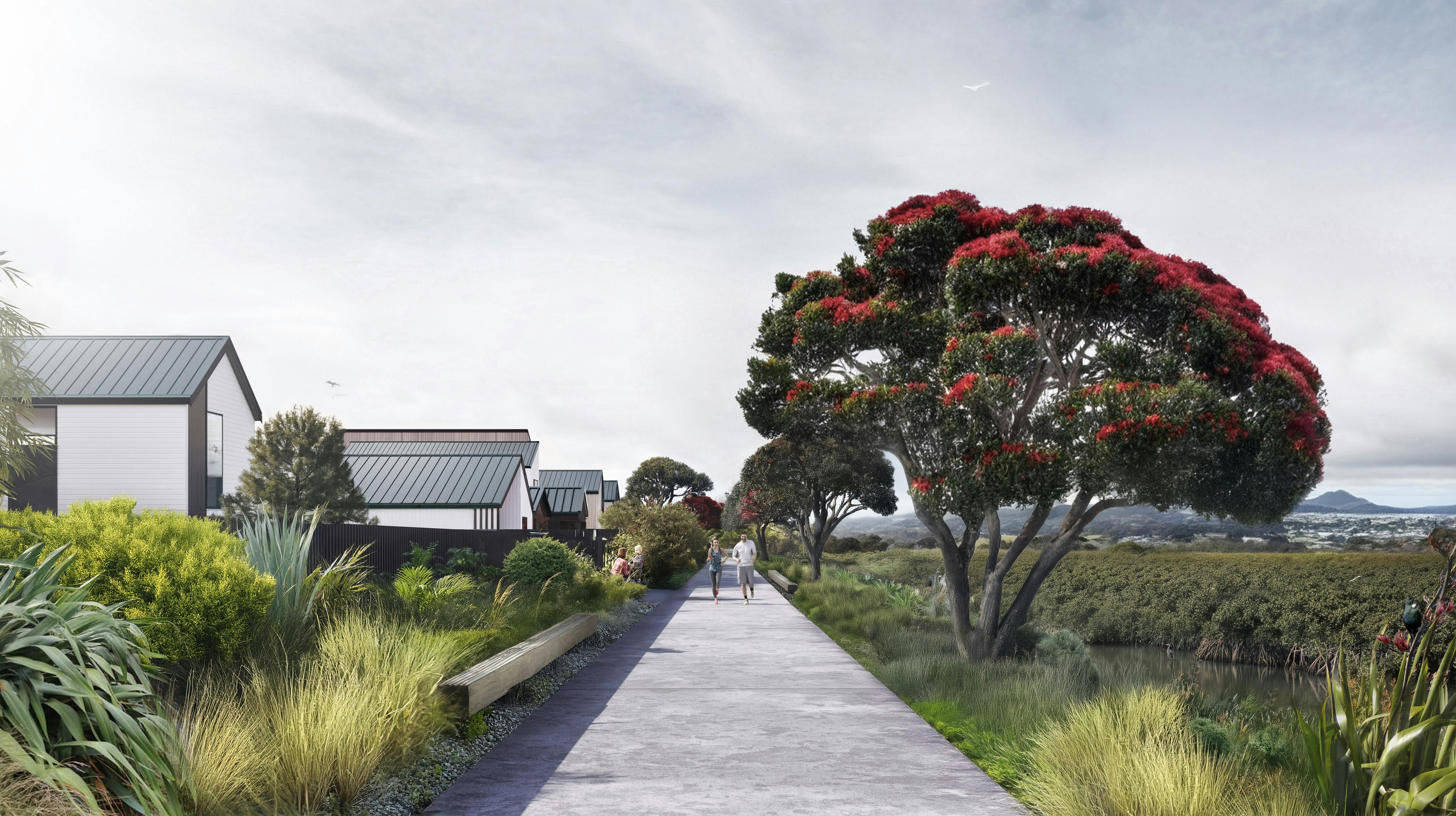 The project brief was to refine and develop a robust masterplan for a new community that will eventually provide over 1200 homes alongside a harbour-side town centre. The expectation was for it to be included as a new growth area in the Whangarei District Plan. Challenges Opportunities Covering 67ha of former port land on Whangarei Harbour, the site presented a flat canvas that was bounded by industrial buildings and the shoreline. The key challenge was to introduce intensification into a city that has traditionally been populated with low density lots, and to plan place-based built fabric that will attract an active and diverse community. To achieve this, it was fundamental to leverage the unique features of the site that included access and views to the Mangapai River, and proximity to the marina. Solution Beginning the process with a conceptual layout, the masterplan was developed to create a connected and legible neighbourhood that offers a variety of amenities. It includes a grid street network, town centre, low and medium density residential housing, retirement housing, mixed use buildings, and public open space. Two key elements define the masterplan: Waitai Trail and Arataki Avenue. The former, offers a safe and engaging route for pedestrians and cyclists that weaves between the coastal edge, mangroves, parkland, and urban areas. Arataki Avenue on the alignment of the historic Tide Gauge Wharf forms a major axis through the development that provides a pedestrian and cycle friendly route for residents to reach the shoreline or village centre. The outcome is a walkable coastal community that projects a sense of place.