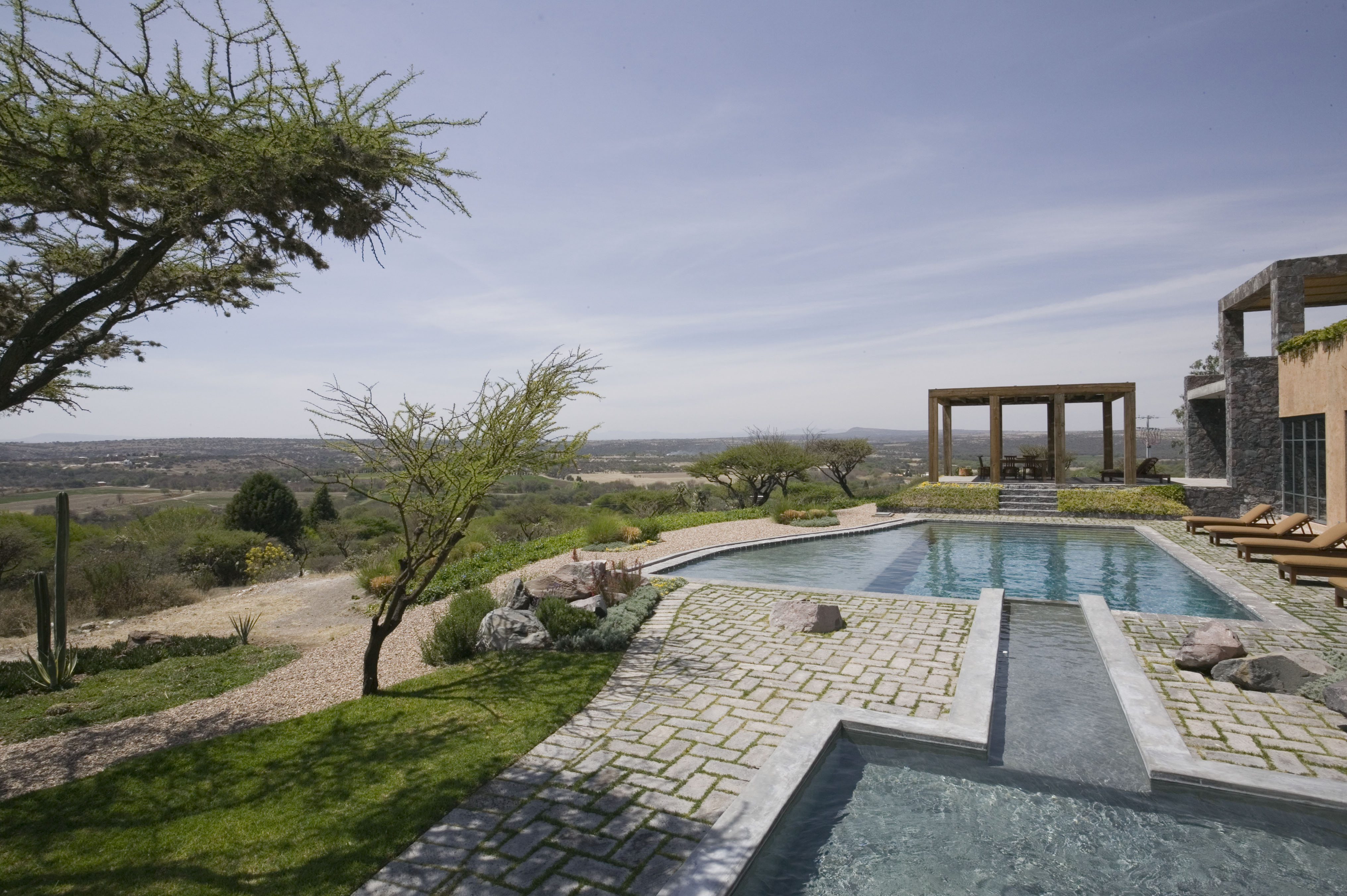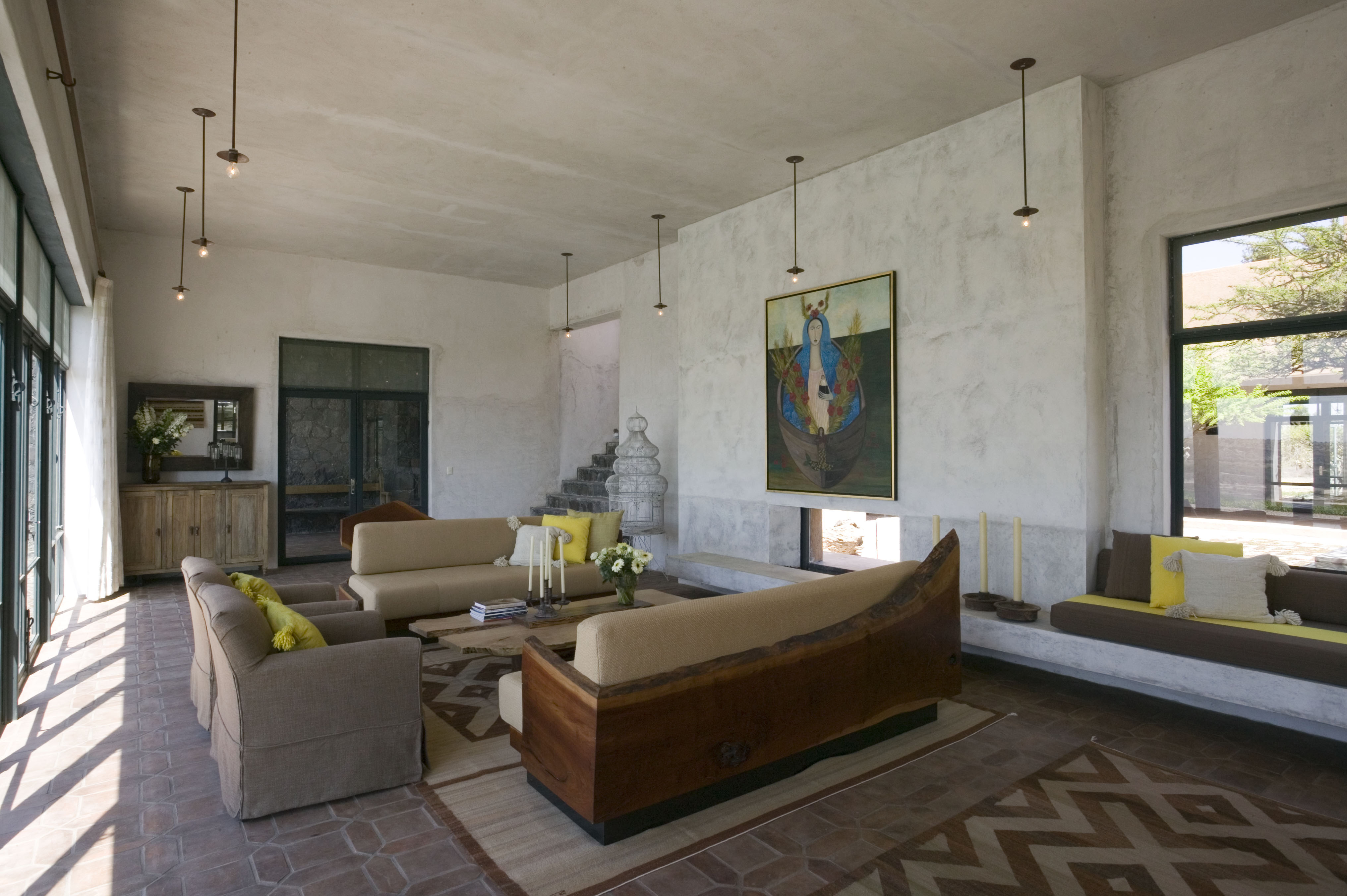 Casa San Miguel de Allende Situated on a plateau that served as a pilgrimage site for the indigenous people in Mexico’s central area, this 12,000 square foot courtyard house, Casa San Miguel de Allende, is a modern retreat in an updated hacienda, and features a hot spring fed swimming pool. DHD Architecture and Interiors worked to meld elegant, modern furniture with the locally available materials and pieces by local artisans. The retreat’s environment was designed to soothe and relax; embracing many natural materials and textures, and leaving spaces open, flowing, and filled with natural light. Each room embraces its own color palette and an individual design, while the house still remains cohesive as a whole and consistent in the peaceful, luxurious atmosphere. Architect: David Howell Interior Design: Steffani Aarons Photography: David Joseph www.davidjosephphotography.com More Info:www.retreatmexico.com